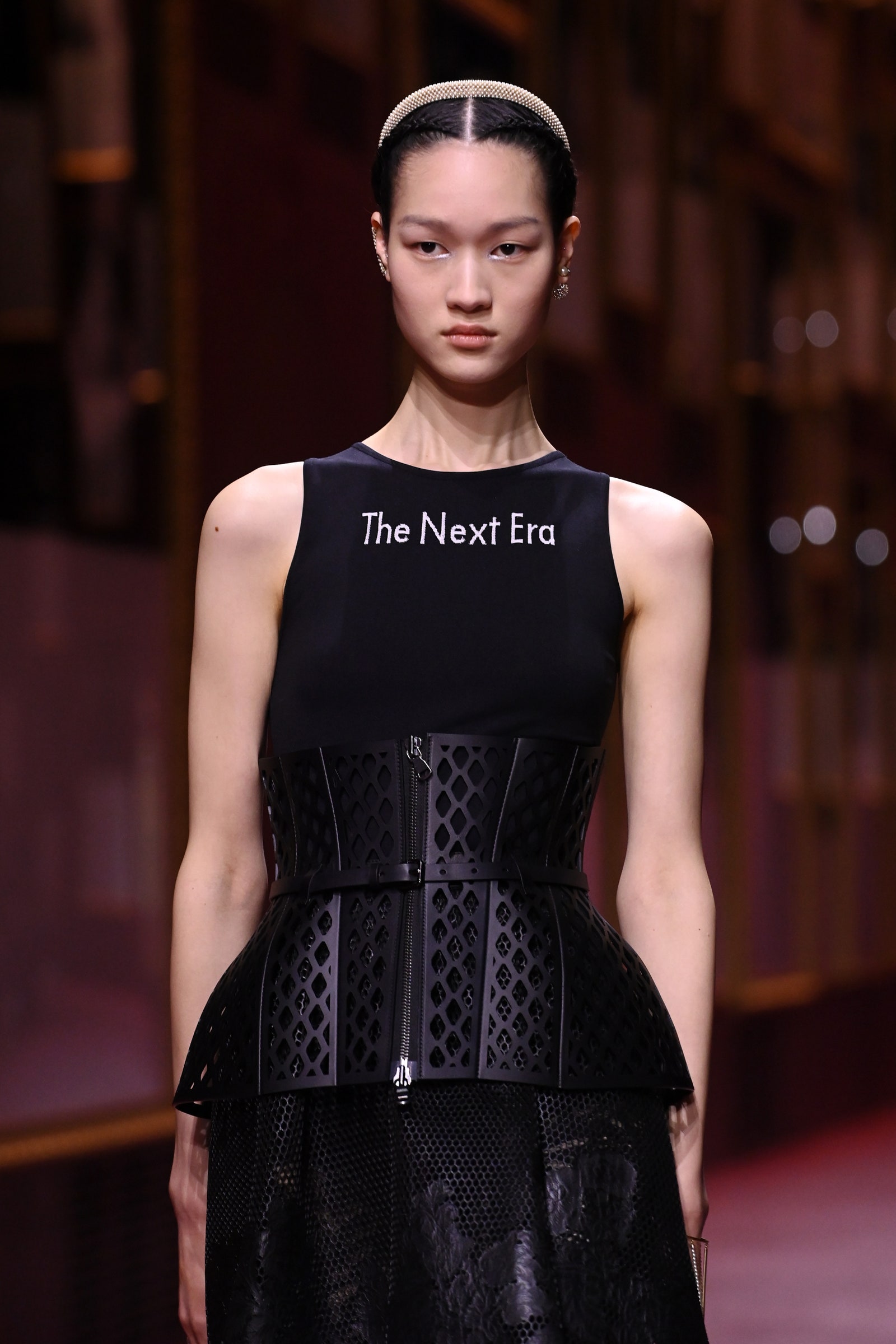 Întărind legăturile dintre artă și modă mai mult ca niciodată de când a fost numită director artistic al casei Dior, Maria Grazia Chiuri, a invitat-o pentru acest spectacol pe artista Mariella Bettineschi, care și-a imaginat un cadru spectaculos pentru ocazie.