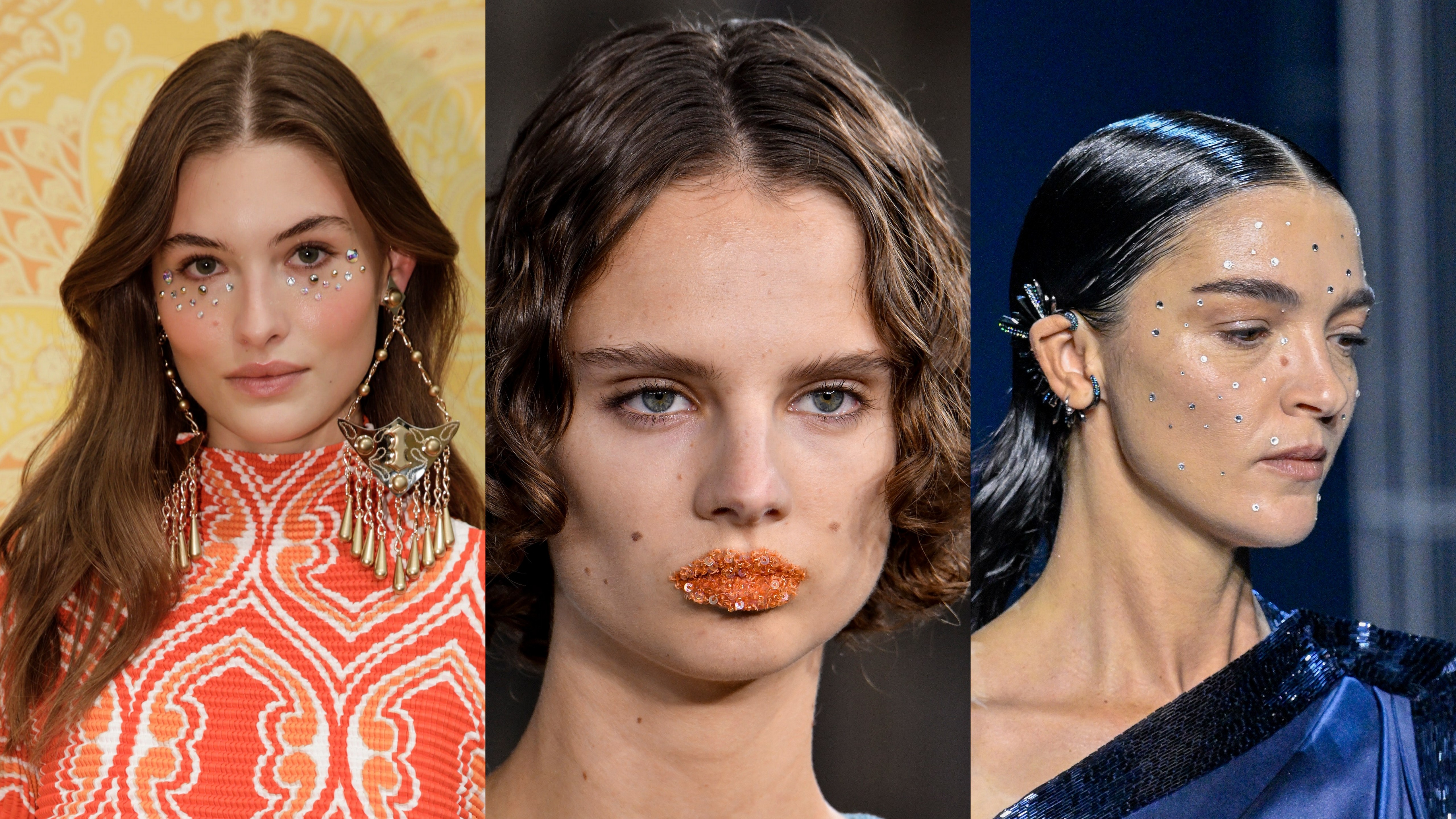 Dacă paietele sunt încă populare în această primăvară, ele se teleportează mult dincolo de pleoape, într-o stare de spirit a anilor 2000. Pe gură desigur, dar și pe pomeți, până la tâmple, sau stropite pe decolteu. Se strecoară chiar și în gene, datorită rimelurilor.