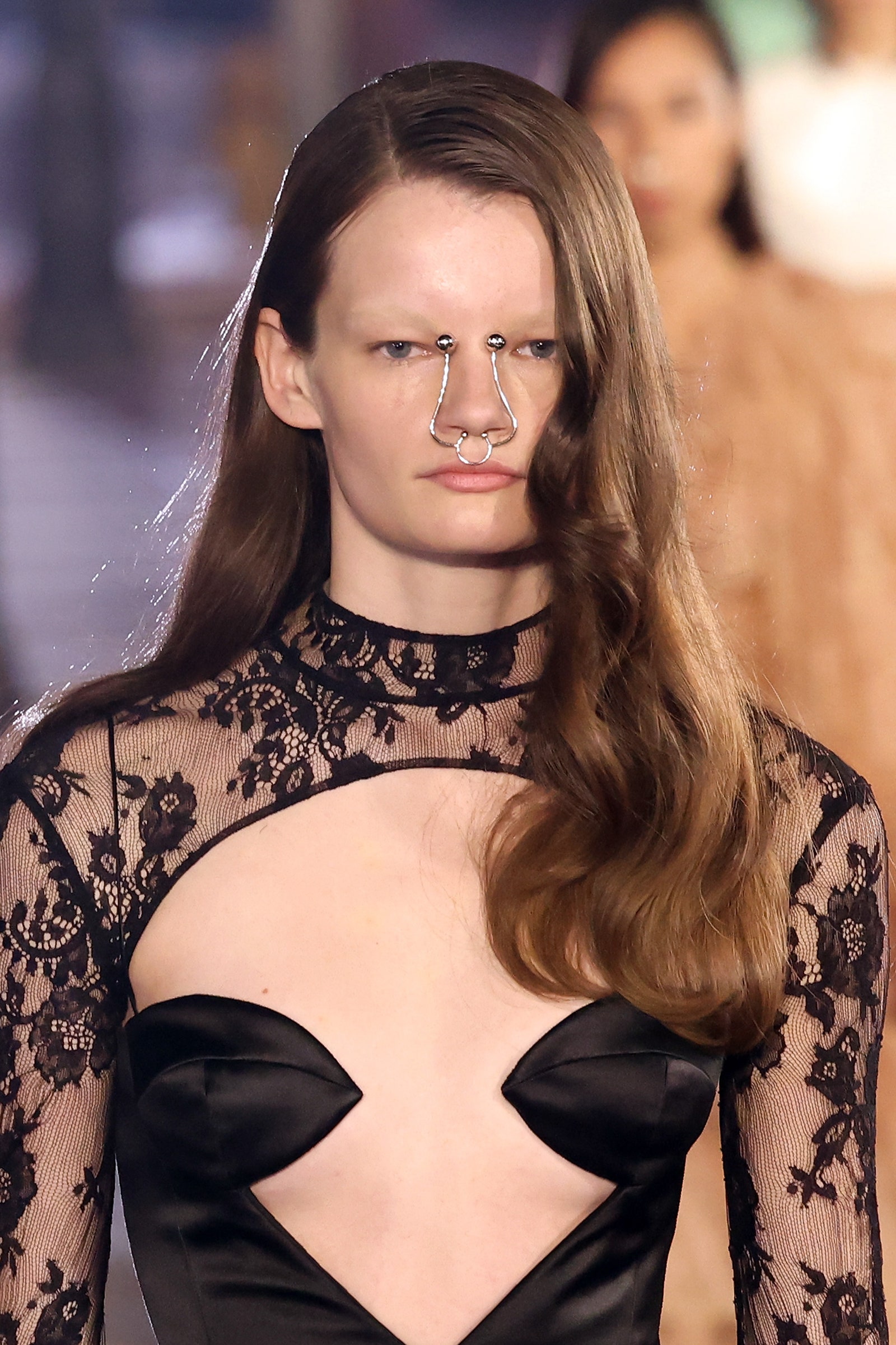 Pe partea de bijuterii, cu diademe de printeșă pe păr roz, un choker prețios sau un colier cu farmec pe legături XXL boabe de cafea cu influențe punk, Gucci aduce un omagiu rădăcinilor sale în societatea actuală, influențată de moda americană.