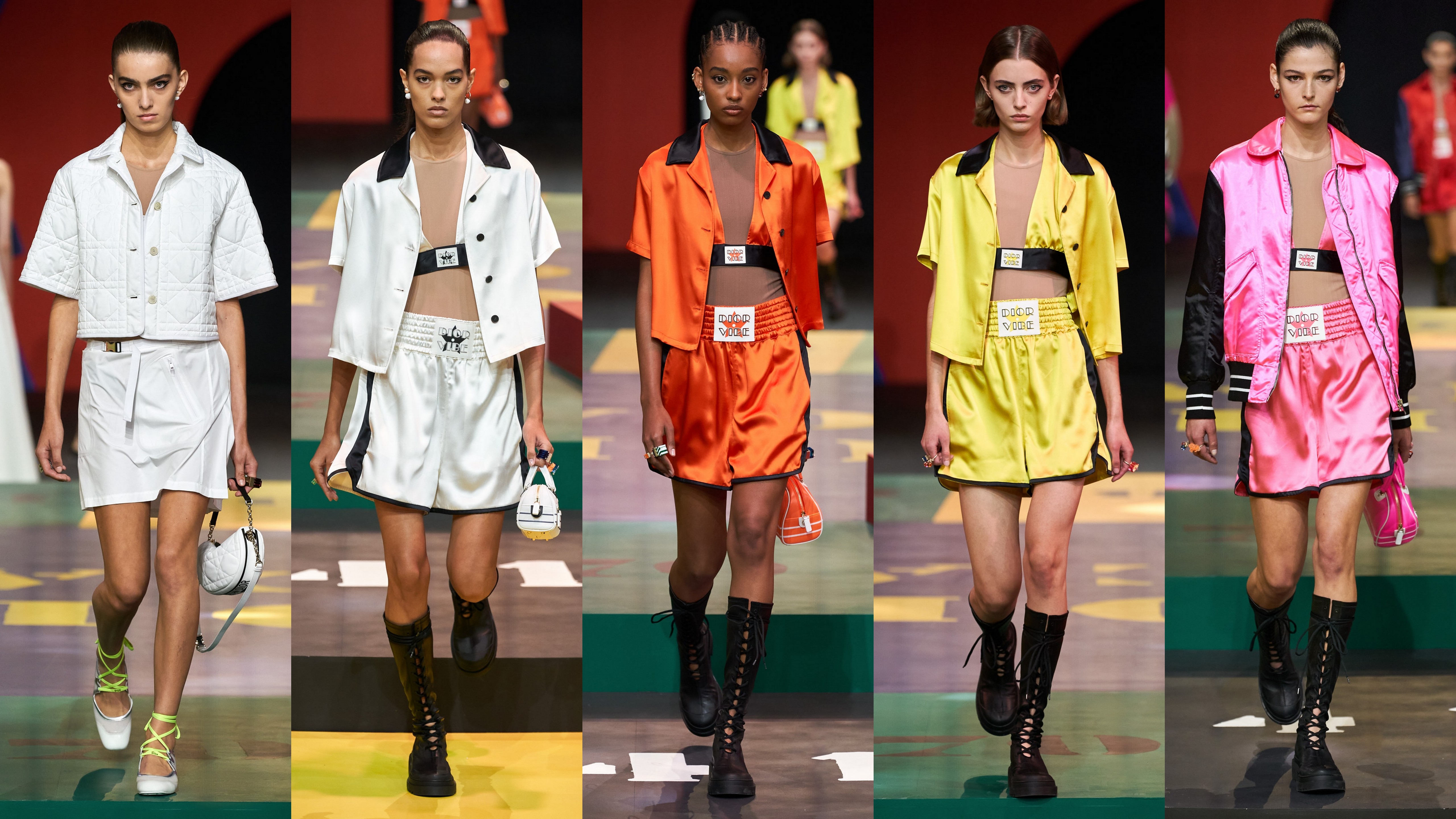 „Trebuie să recunoaștem faptul că umanitatea are nevoie de haine, pentru că este un mod de a performa în lume”, a spus ea. Designurile lui Chiuri erau perfect sincronizate cu decorul. A existat o explozie de culori, imprimeuri supradimensionate, croieli abstracte. Ea a fost inspirată în special de colecția Slim Look a lui Bohan, prezentată în 1961.