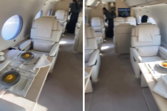 Avionul lui Kim este același cu cel folosit de cel mai bogat om din lume, Jeff Bezos. Prezintă un interior de culoare crem, finisaje din cașmir și scaune din piele - aceeași schemă de design ca și casa ei.