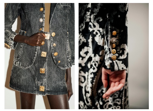 Pentru colecția de toamnă/iarnă 2025-2026, Daniel Roseberry reînvie această moștenire în Lone Star, transformând nasturele într-o adevărată sculptură în miniatură. Turnate în aurul strălucitor al lui Schiaparelli, motive de lacăte, găuri de chei și embleme anatomice împodobesc jachete, paltoane, tricotaje și accesorii. Fiecare nasture strălucește ca un vers solitar, un semn de punctuație prețios pe narațiunea hainei, invitând privirea să zăbovească asupra detaliilor minuțioase.