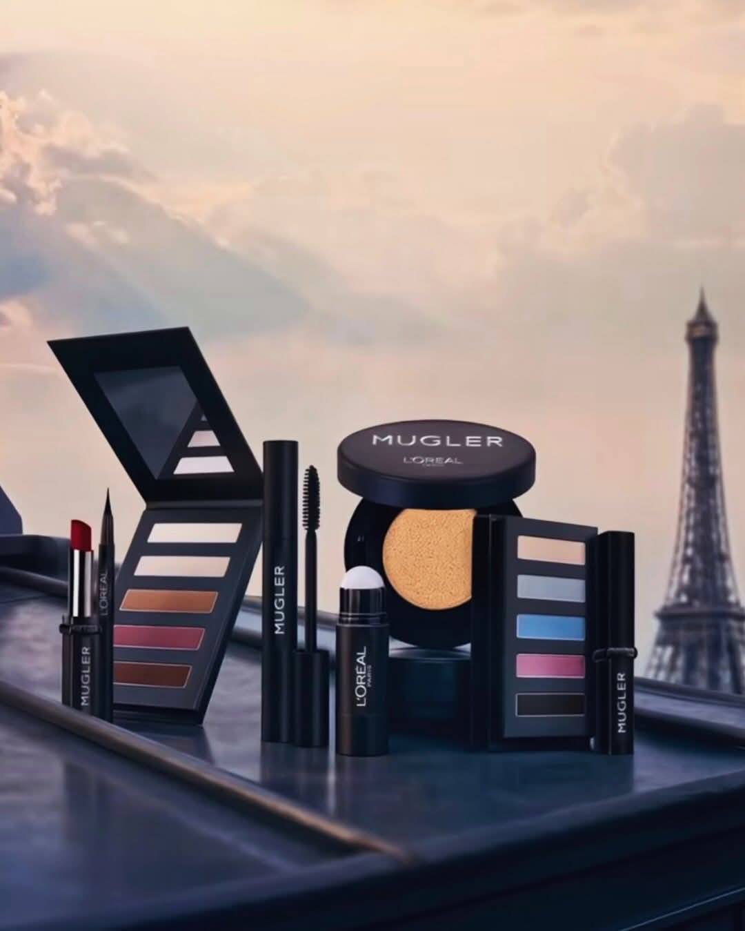 Mugler a avut o linie proprie de makeup care a funcționat între 2008 și 2010. În 2020, Grupul L’Oréal a achiziționat compania Mugler, care include atât linia vestimentară cât și divizia de parfumerie Mugler Parfums (celebră pentru esențe precum Alien sau Angel). L’Oréal Paris a colaborat în trecut și cu alte branduri de modă pentru colecții de beauty: cu Balmain în 2017, cu Isabel Marant în 2018 și cu Karl Lagerdeld în 2019.