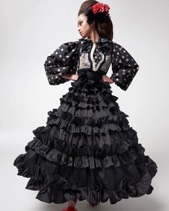 Moștenirea casei sale este prezentă în acest sezon în toată splendoarea sa: fuste largi, volane tricotate manual și mâneci extravagante sunt însoțite de arcuri și pene cu aer sentimental. Intenția designerului pentru colecție a fost de a invita publicul într-un moment de introspecție, reflectând asupra importanței gesturilor simple.