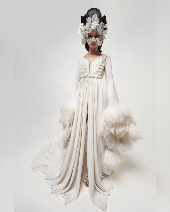 Întrebat câte ore a durat pentru a crea aceste ținute minunate, designerul a răspuns: „Dacă sunt client și aud câte ore, câți metri de țesătură, sunt deja obosit. Vreau ceva care să fie așa”, a spus el, pocnind din degete. „Așa cum s-a făcut într-o noapte fără efort”.