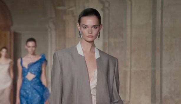 Într-o paletă de dune, coral și acvamarin, siluetele oscilează între fragilitate și forță, între vis și realitate. Accesoriile - genți plisate, pantofi cu toc conic, bijuterii din pene de argint - extind acest studiu al sinelui prin atingere și material.