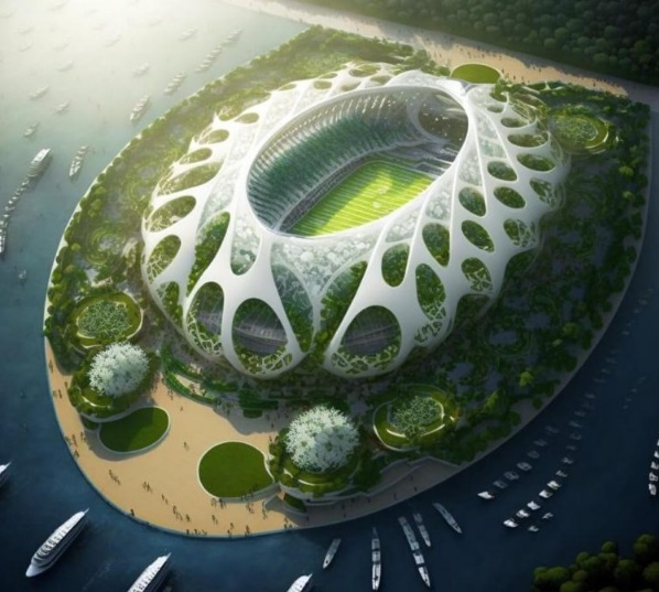 Arenele sportive create folosind AI pot părea un proiect de design care nu va prinde niciodată contur sau, în cel mai bun caz, un vis îndepărtat. Cu toate acestea, țări precum China și Qatar au făcut deja acest lucru. Pentru Cupa Mondială FIFA 2022, națiunea din Golf a construit un stadion din containere de transport, care a fost dezasamblat ulterior după jocuri. Stadionul Quzhou din China, pe de altă parte, este considerat a deveni cel mai mare complex adăpostit de pământ din lume.