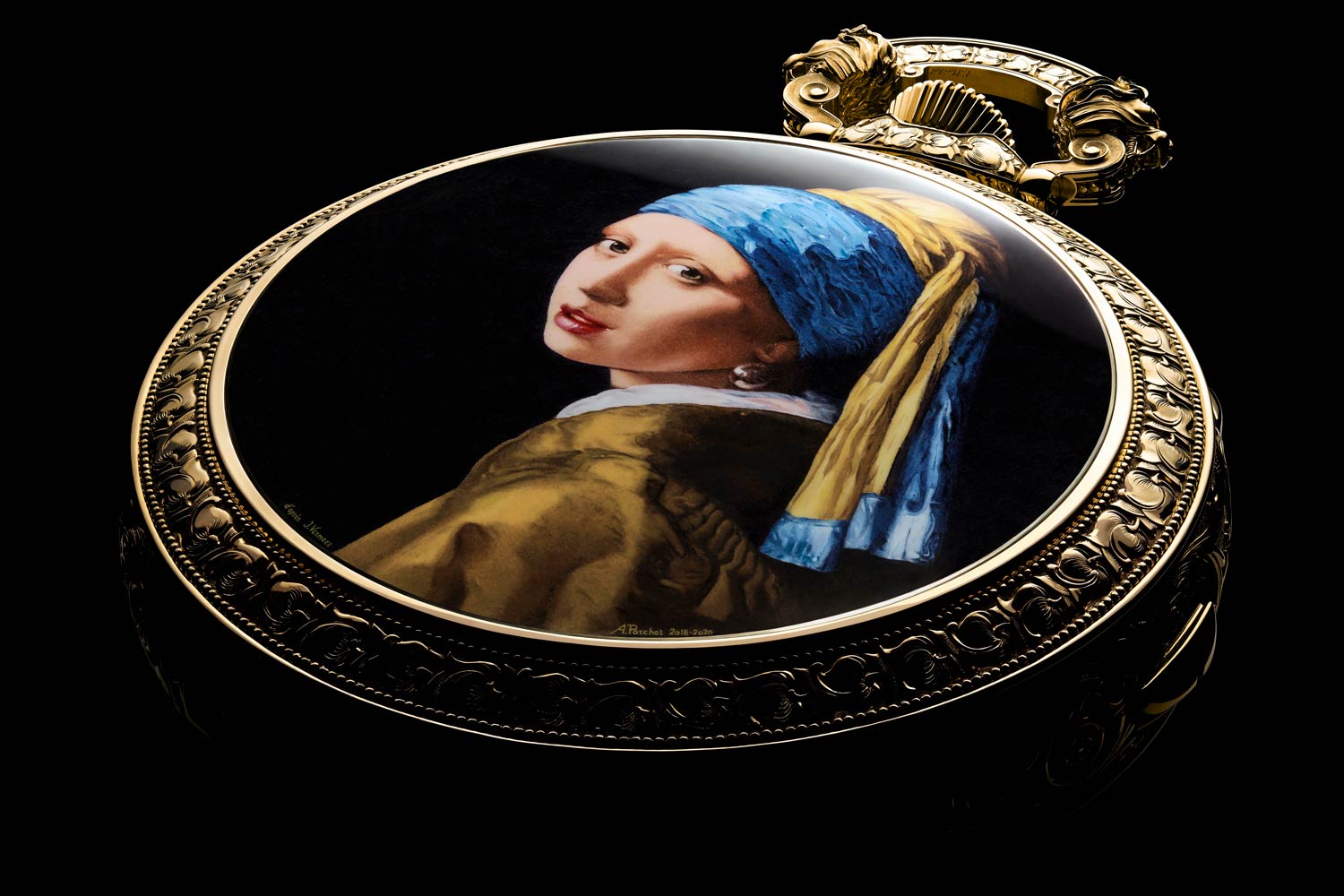 Ceasul de buzunar măsoară 98 mm în diametru și este gravat de meșterul Emmanuelle Maridat, care a lucrat 5 luni pentru a finaliza gravarea. Gravura include motive care variază de la lalele, perle și frunze de acant la o pereche de lei. Capacul este emailat și conține o reproducere în miniatură a celebrului tablou Fata cu cercei de perle din 1665 ca un omagiu adus pictorului olandez Johannes Vermeer.