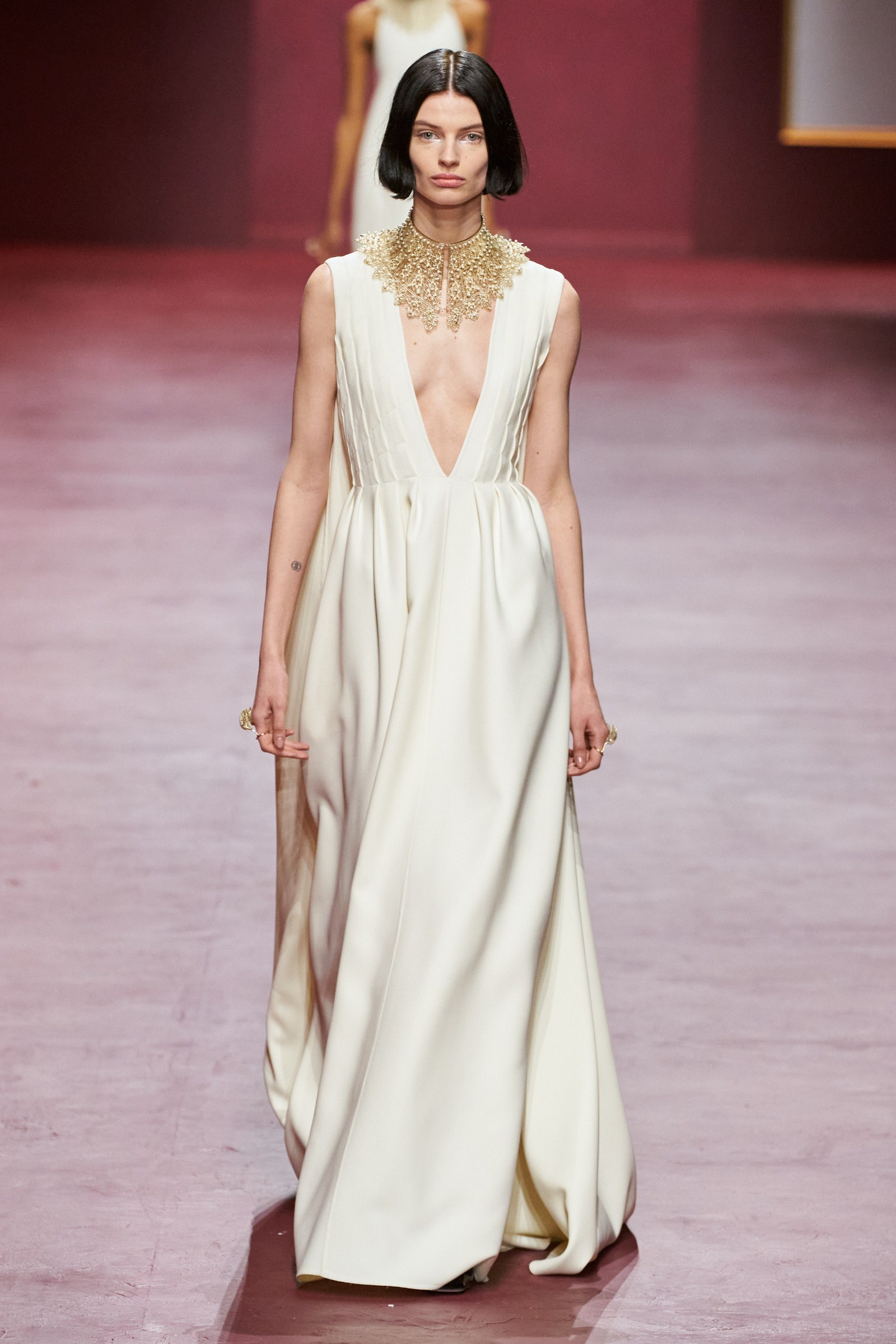 Întărind legăturile dintre artă și modă mai mult ca niciodată de când a fost numită director artistic al casei Dior, Maria Grazia Chiuri, a invitat-o pentru acest spectacol pe artista Mariella Bettineschi, care și-a imaginat un cadru spectaculos pentru ocazie.