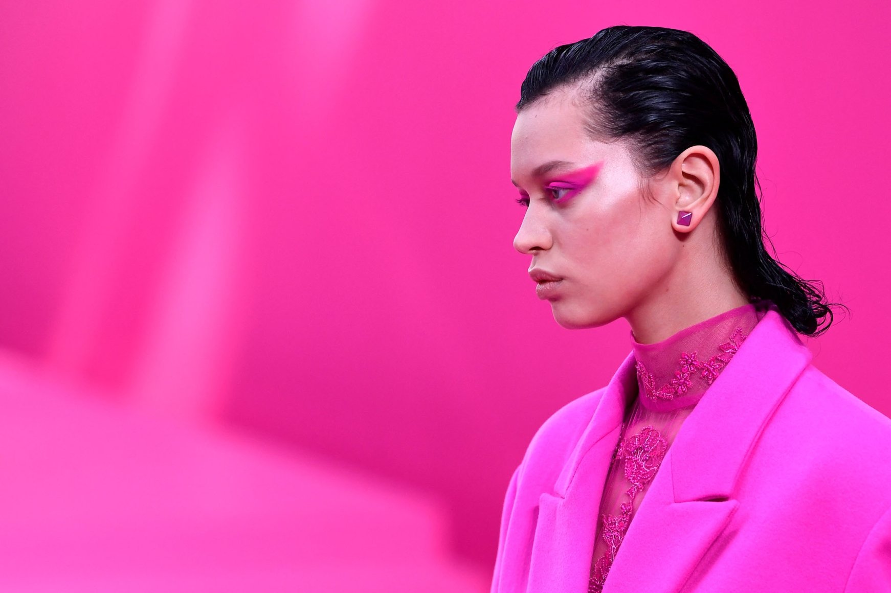 Pentru look-urile monocrome ale show-ului Valentino, machiajul nu a făcut excepție. Fardul de pleoape era într-adevăr roz magenta, purtat în jurul ochiului. La Saint Laurent, pigmenții care îmbrăcau ochii au fost violet și accentuați în colțul interior al ochiului. În timp ce show-ul Off White a dezvăluit un ochi galben strălucitor, care părea că ar fi fost marcat cu cretă. Pe scurt, culorile care sunt de obicei rezervate verii vor predomina și toamna-iarna viitoare.
