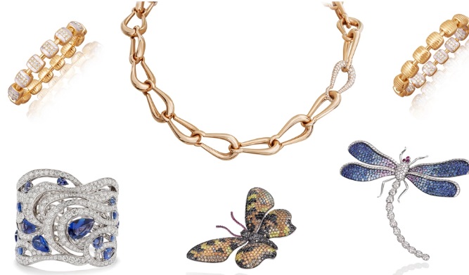 Bijutierul Roberto Coin din Vicenza a prezentat la târg numeroase broșe sub formă de fluturi supradimensionate, pe lângă o menajerie în creștere de bijuterii prețioase pentru insecte.