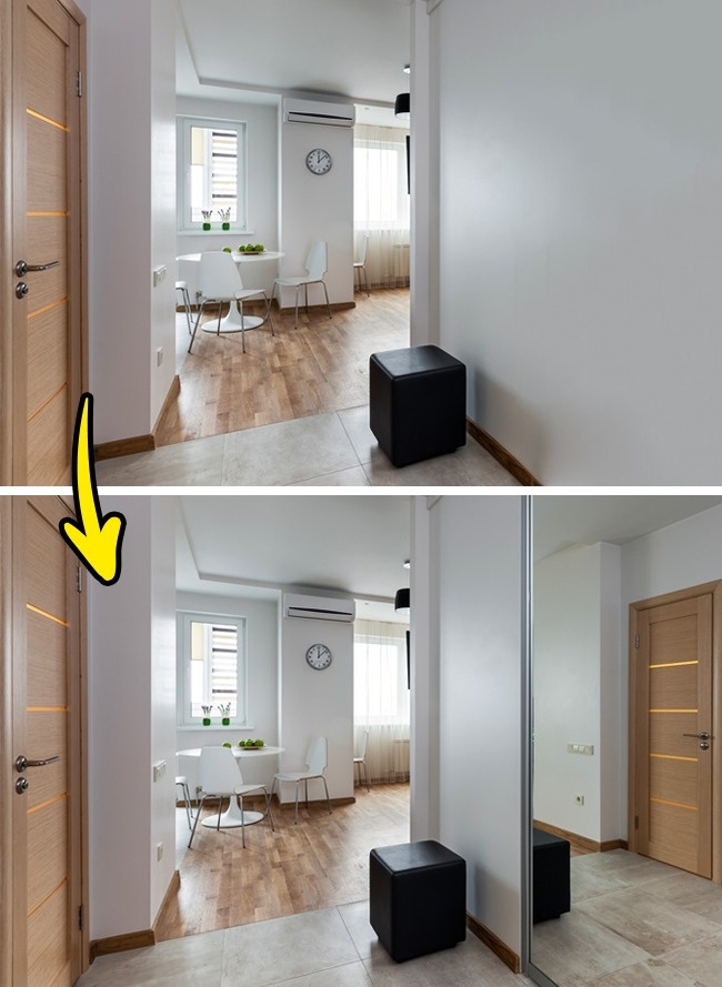Culoarea nu este singura modalitate de a face un apartament mai spațios. De exemplu, oglinzile pot mări vizual un spațiu.