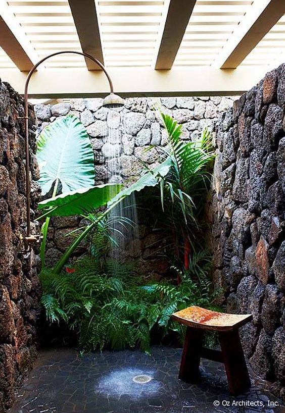 Cu aceste plante pe perete și aspectul de piatră al gresiei te vei simți ca într-un centru spa.