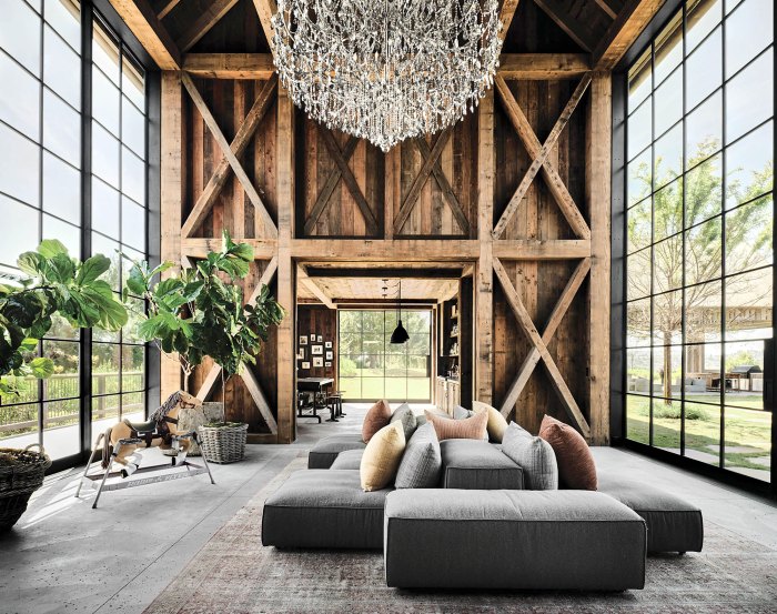 Un candelabru de cristal masiv și un set de tronuri argintii personalizate ar putea să nu se potrivească într-o „fermă contemporană”. Dar Mila Kunis și Ashton Kutcher au făcut cumva să se simtă ca acasă în casa lor opulentă, dar rustică, din Los Angeles.