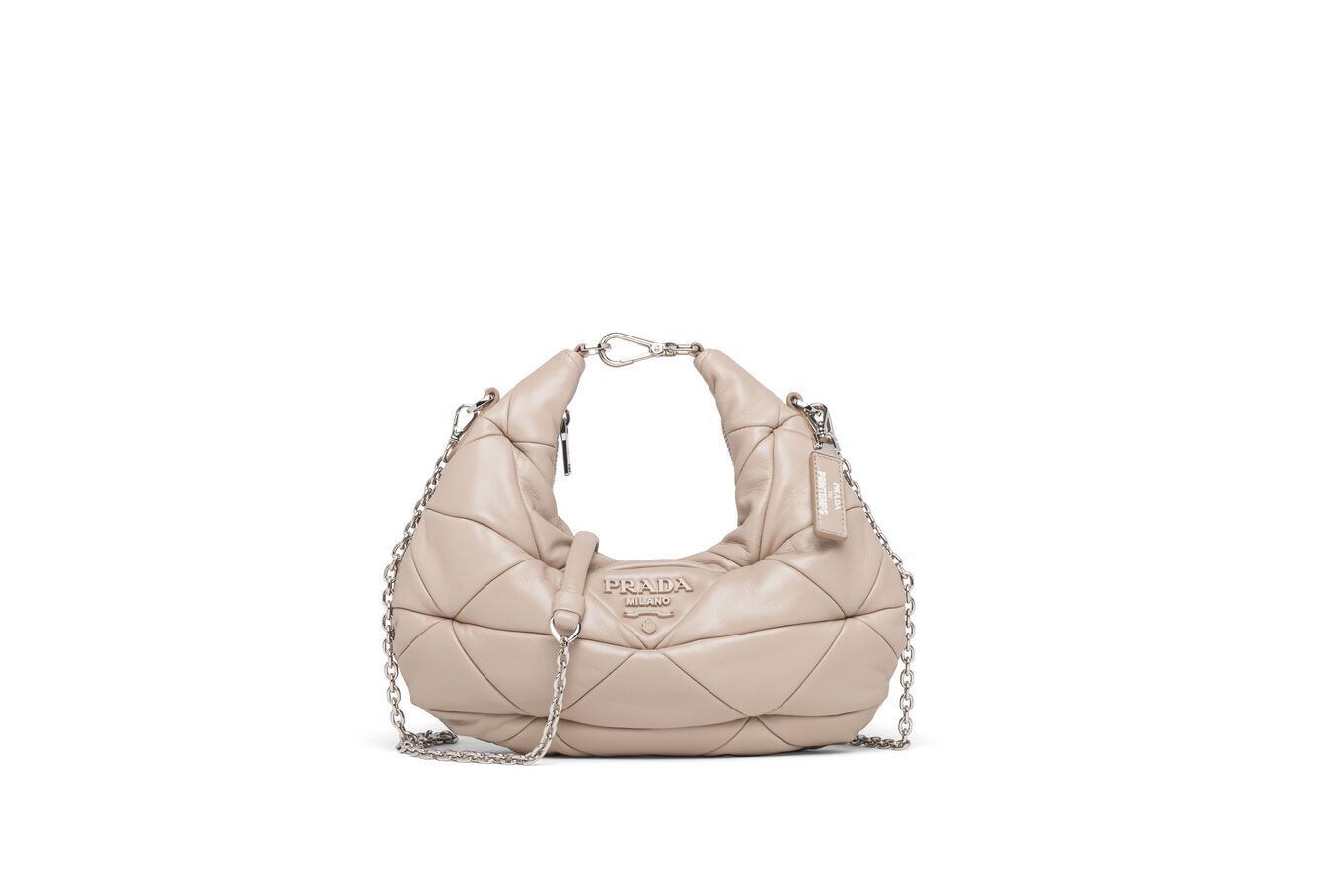 Dezvăluită cu ocazia colaborării efemere cu Printemps, geanta Nappa de la Prada are tot ceea ce reprezintă o geantă it.