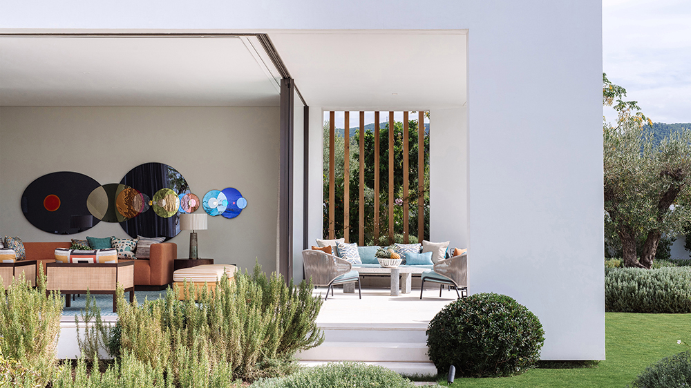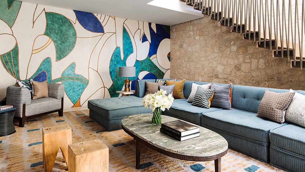Miyar a asociat această piesă cu câteva alte piese de mobilier clasice: câteva fotolii din mijlocul secolului din Brazilia care completează culorile mai strălucitoare ale camerei. Paleta în sine a fost inspirată de mediul înconjurător, încorporând mai multe nuanșe de albastru și verde, caracteristice Ibiza.