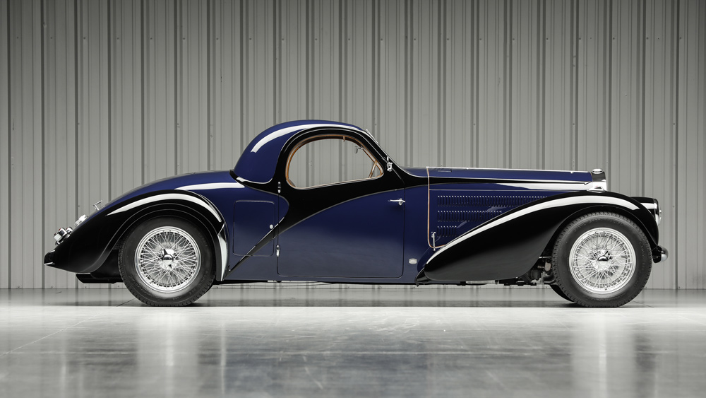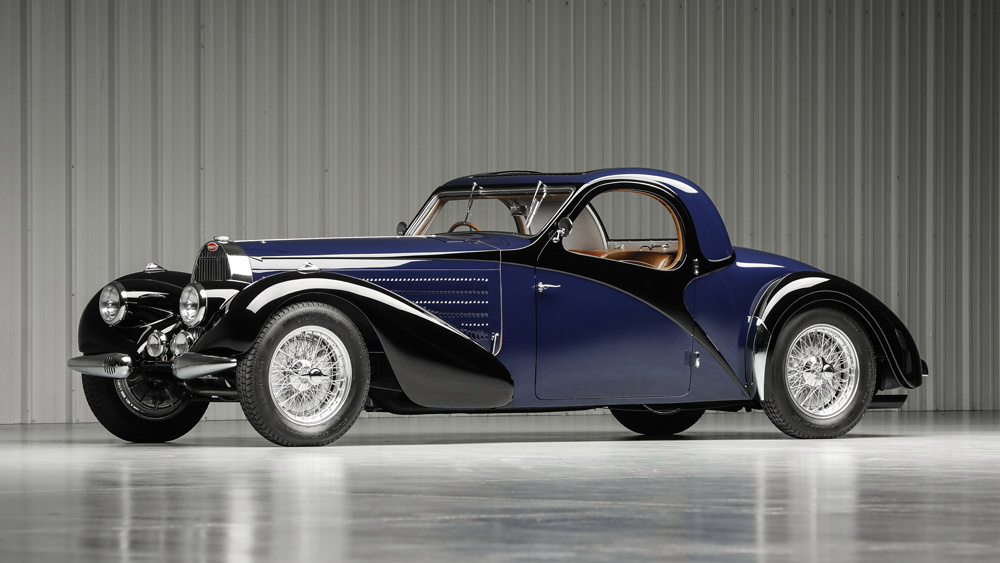 Modelul de epocă poartă un corp Atalante timpuriu, realizat de carosierul francez Gangloff, care este în același timp sportiv și proporțional clasic, cu o caroserie lungă și o cabină compactă. Istoricul Bugatti David Sewell s-a documentat pe larg cu privire la această mașină, având seria de șasiu nr. 57641. Mașina a trecut prin colecții franceze semnificative, inclusiv cea a lui Henri Novo și Colecția de artă Schlumberger din Paris. După o restaurare a cadrului, vehiculul a fost distins cu premiul Cea mai bună mașină din clasa sa la Pebble Beach Concours d'Elegance în 2016.