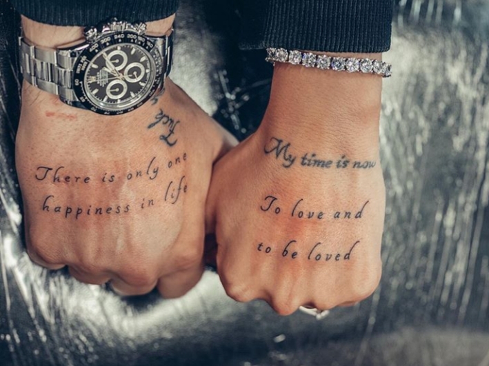 altfel spus, tatuaje gemene care să-i unească și mai mult pe cei doi îndrăgostiți. Virgil și-a tatuat pe podul pumnului "There is only one - Happiness în life" iar ea și-a tatuat "My time is now - To love and to be loved". La acest tatuaje au primit milioane de aprecieri și de comentarii. Unul dintre urmăritori a văzut că el are tatuat sub ceas "Fuck you" și a comenatat că nu se prea potrivește acest tatuaj cu celelalte. Însă Adelina i-a comentat, "depinde cum privești lucrurile".