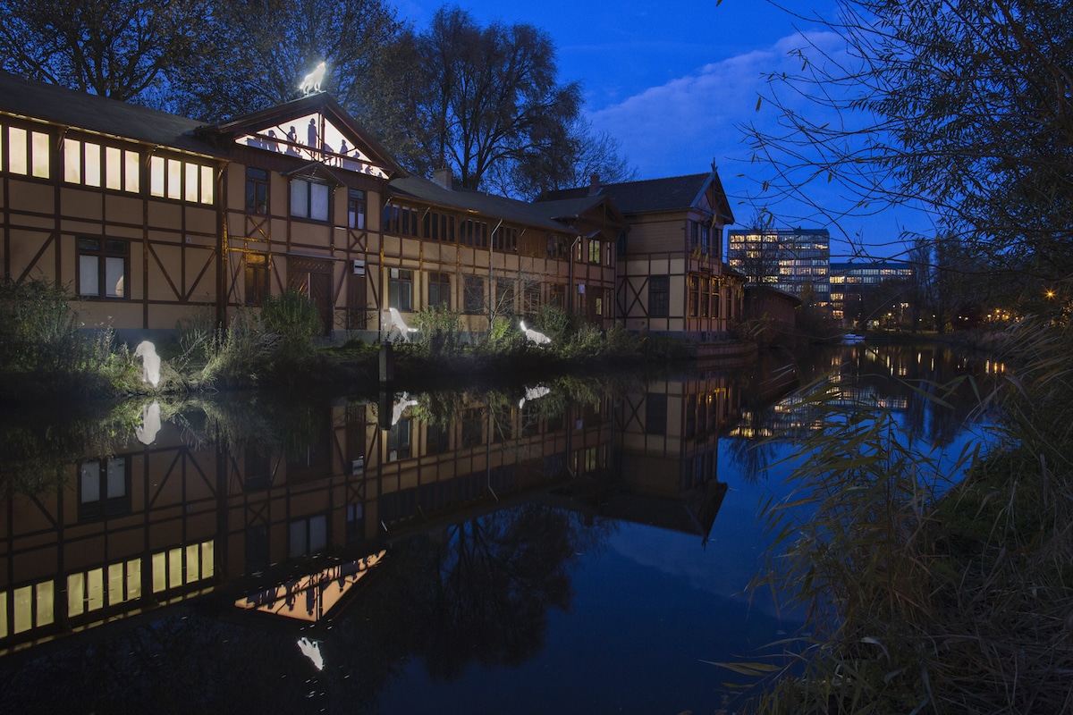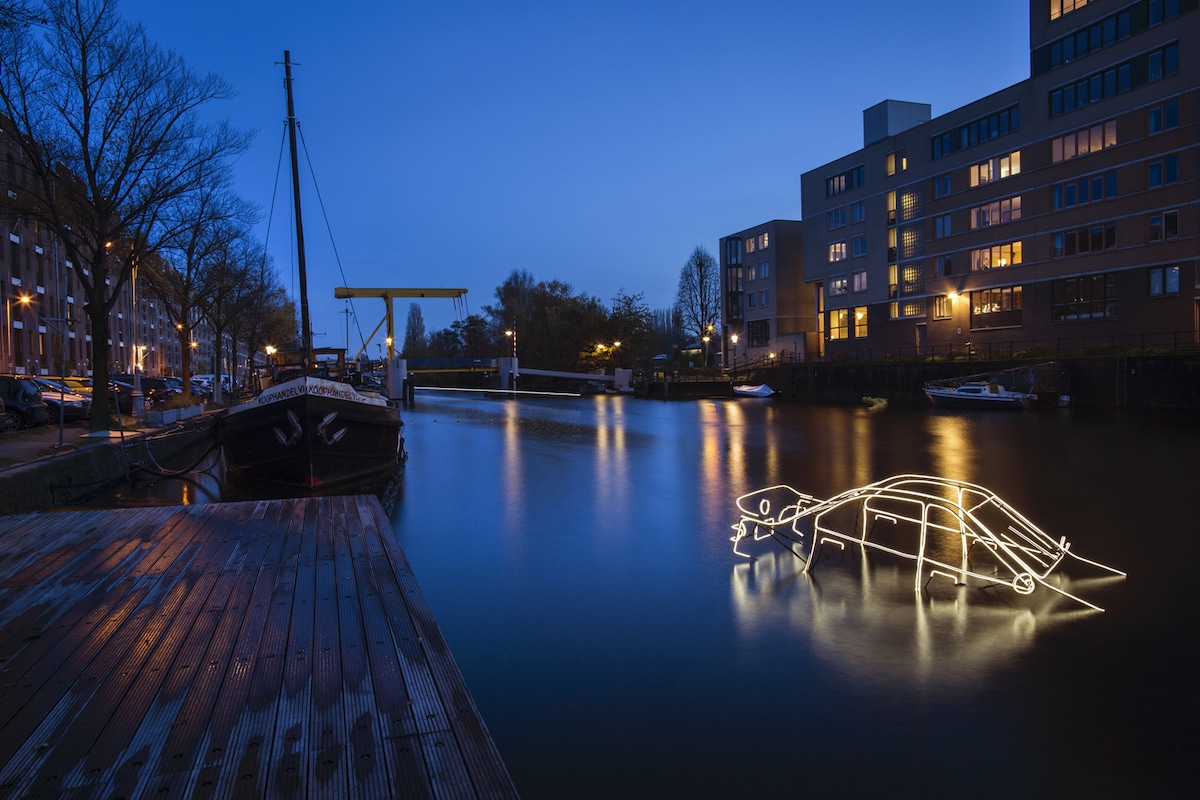 Canalele din Amsterdam sunt din nou “pânza” pentru arta mainstream spectaculoasă datorită celui de-al 8-lea festival anual al luminii din Amsterdam. Timp de 53 de zile, instalațiile realizate de artiști locali și internaționali transformă orașul Amsterdam într-un spectacol de culoare și lumină. Ediția din 2019 este ghidată de tema generală DISRUPT!, Ceea ce face ca instalațiile să reflecte asupra temelor relevante precum schimbările climatice, tehnologia și războiul. Profitând de cele aproape 16 ore de întuneric din Amsterdam din această perioadă a anului, opera de artă luminează zonele cheie ale orașului. De remarcat este Tensiunea de suprafață a lui Tom Biddulph și Barbara Ryan. Pe măsură ce o mașină fragmentată se scufundă într-un canal, ne reamintim de toate scenele de dezastru prea familiar pe care le vedem la știrile de la miezul zilei. Artistul japonez Masamichi Shimada se joacă, de asemenea, cu apă în Butterfly Effect. În acest caz, fluturii delicați ating suprafața apei, aripile lor strălucind într-un albastru intens. Ilustrați în mișcare și cu proporții supradimensionate, Shimada atrage atenția asupra puterii lor.