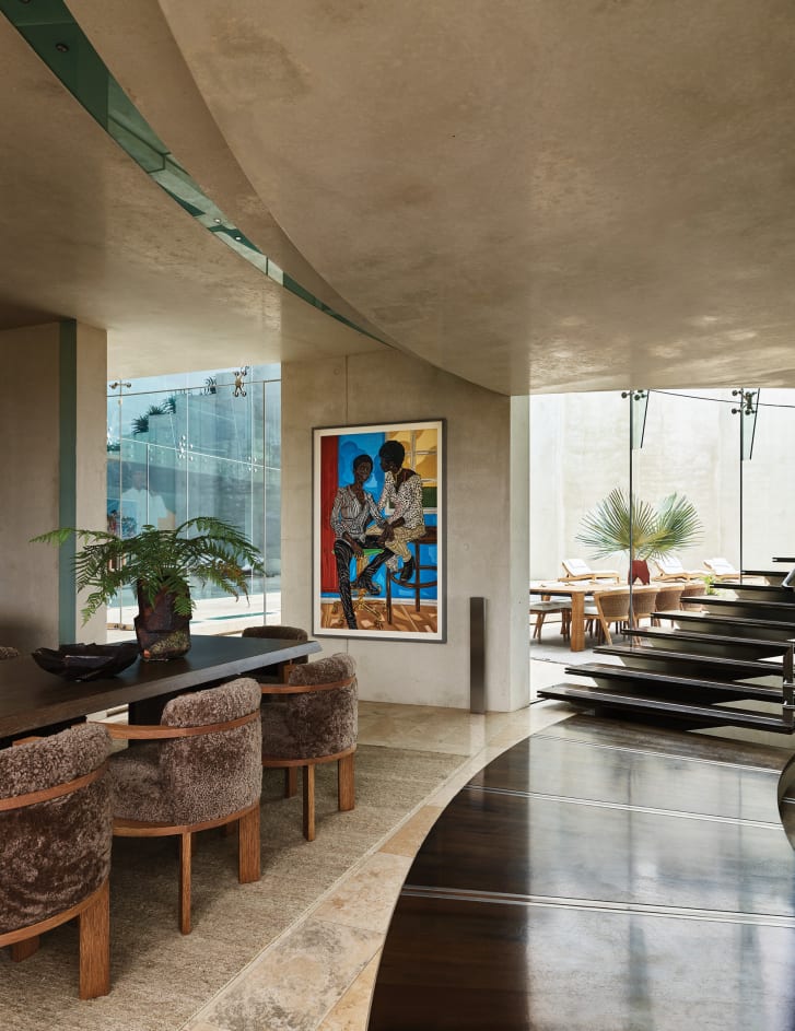 Casa aleasă este o magnifică vilă modernistă, mare de peste o mie de metri pătrați și plină de opere de artă, cu vedere la Oceanul Pacific. Se spune că vila a inspirat locuința protagonistului filmului „Iron Man”. Însă mobilierul, proiectat de celebrul designer de interior Kelly Behun, nu este al unui super erou. Atmosfera creată este aceea a unui cuib intim și familiar, plin de vise.