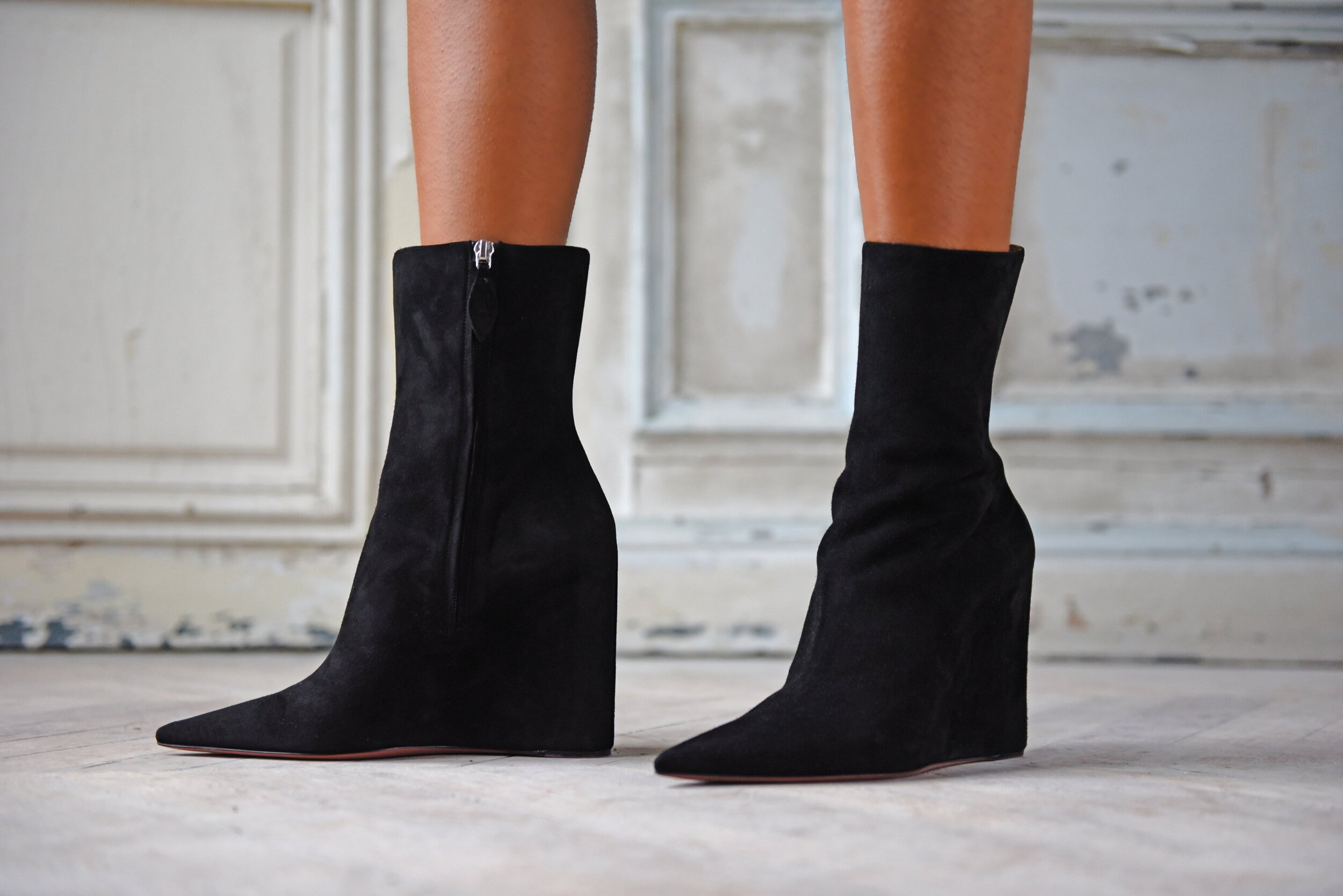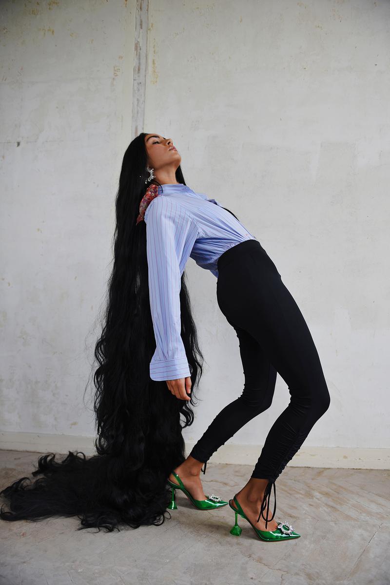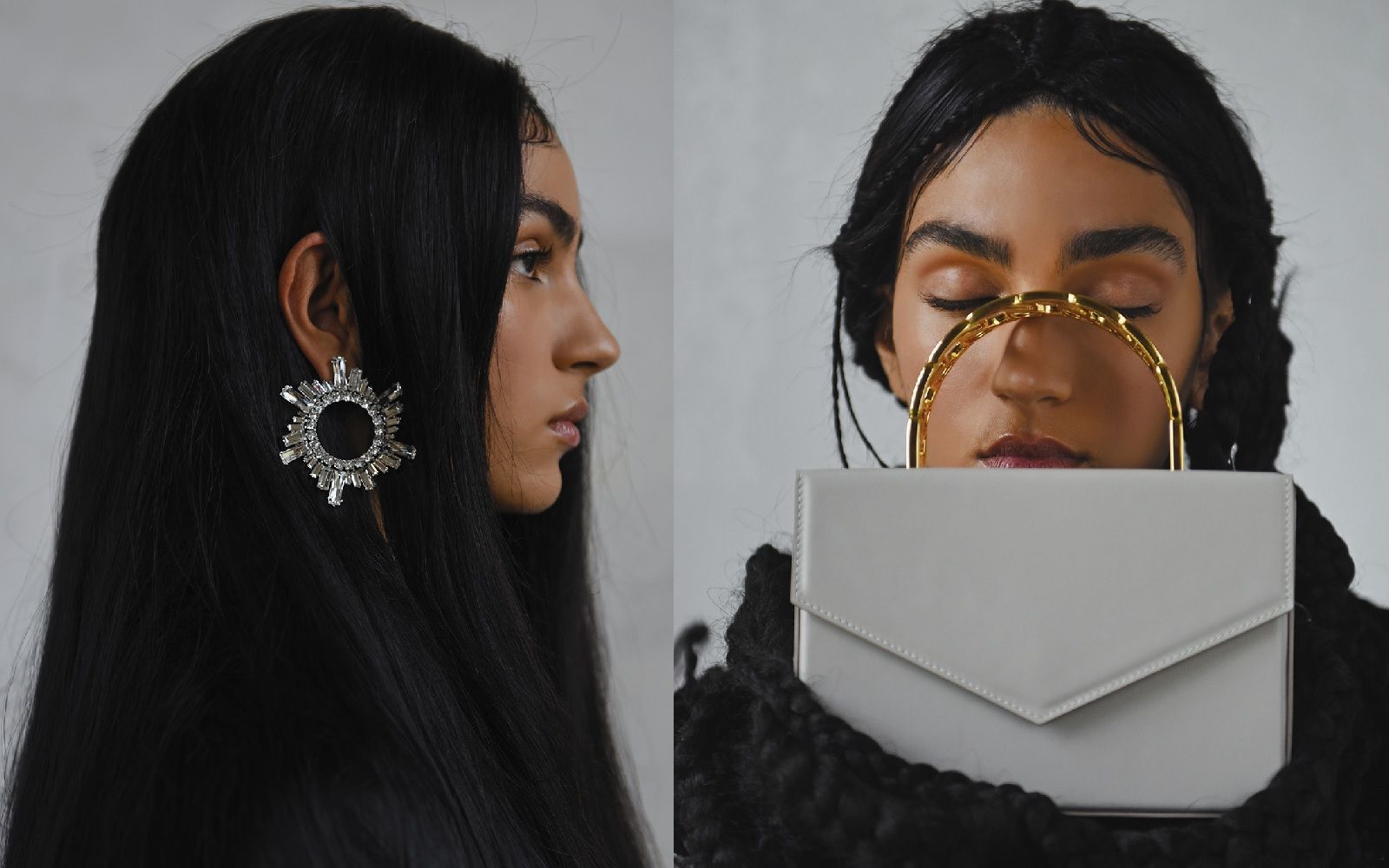 Cerceii Begum, numiți după popularul toc Begum al pantofilor realizați de Amina Muaddi, conțin pandantivul de cristal care împodobește pantoful. Geanta Amini este un stil boxy care ajunge în mai multe culori și configurații, inclusiv satin cu imprimeu leopard și piele neagră elegantă.
