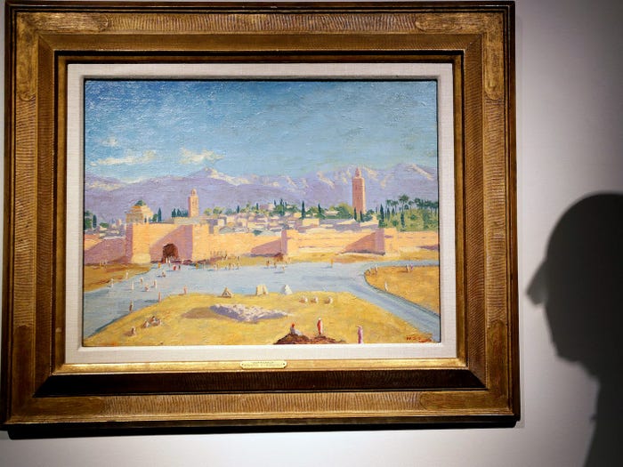 „Turnul Moscheii Koutoubia” a fost creat în Maroc în 1943 după Conferința de la Casablanca. În timpul acestui summit, el și președintele american de atunci, Franklin D. Roosevelt, au discutat despre strategiile privind înfrângerea Germaniei naziste. Churchill i-a dăruit apoi pictura lui Roosevelt.