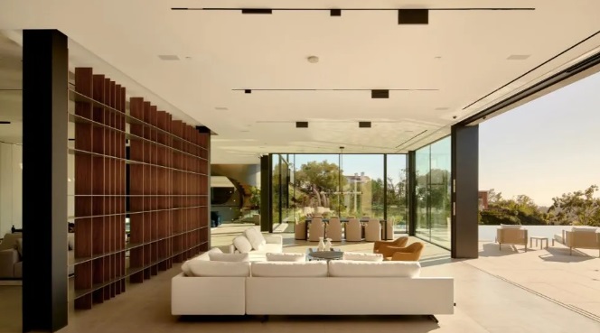 La nivelul inferior, spațiile de relaxare și wellness sunt de top datorită unei săli de joacă, cinematograf, sală de sport, cramă cu 1.152 de sticle și spa. Acesta din urmă a fost chiar împodobit cu o saună, o cadă și un duș cu efect de ploaie. Etajul principal este locul în care veți găsi majoritatea spațiilor de divertisment, pe lângă un colț de servit micul dejun, bucătăria bucătarului Poliform și o suită primară luxoasă, cu propriul șemineu, zonă de relaxare și două dressinguri. Afară, curtea din spate se simte ca o oază, datorită unei piscine infinite extinse și priveliștilor pitorești ale Oceanului Pacific, insula Catalina și canioanele din apropiere.