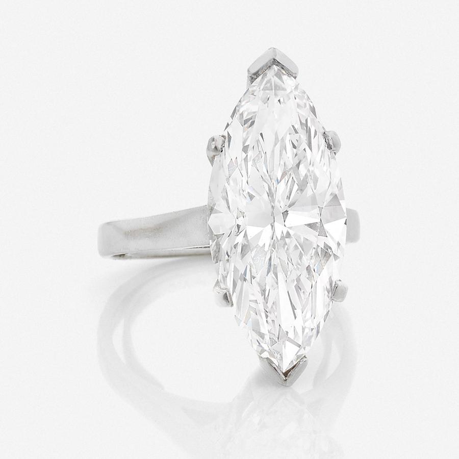 Inel din platină cu diamant de 7,66 carate, Gübelin. Preț estimativ: 130.000 - 150.000 €.