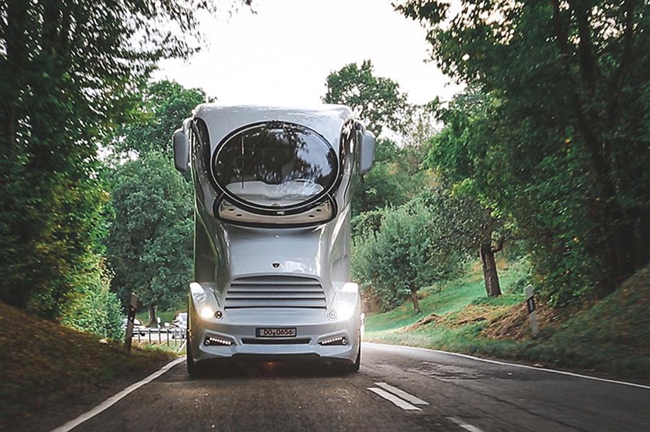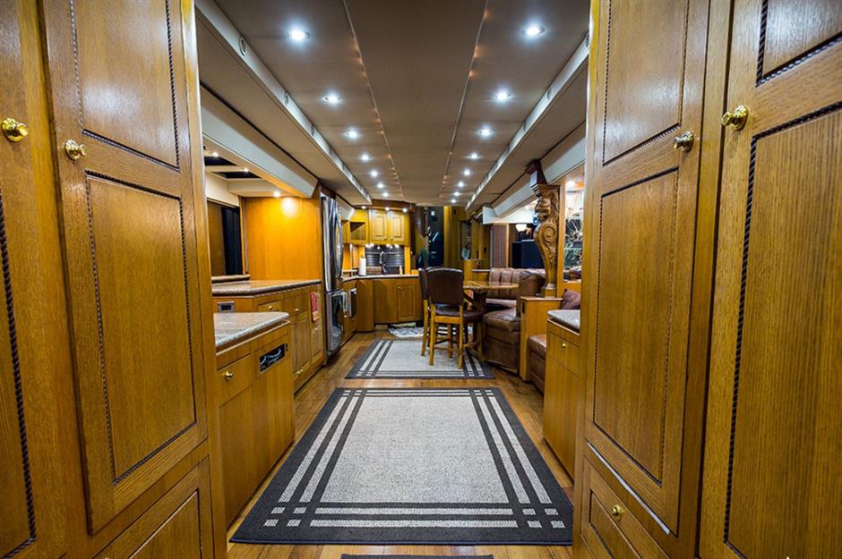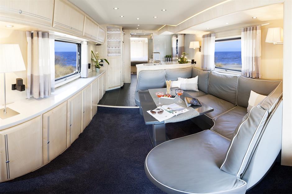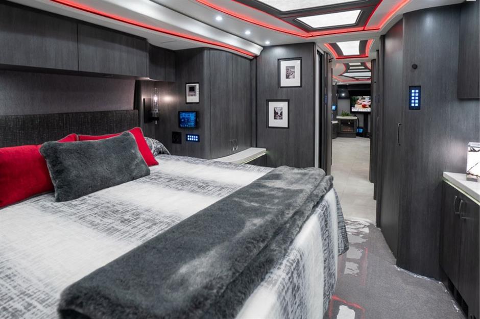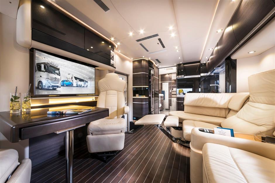 Această autorulotă uimitoare, de la producătorul german de lux Volkner Mobil, are un garaj încorporat. Modelul Performance (12m) se vinde cu 1,36 milioane de dolari și este echipat cu un motor Mercedes-Benz de cea mai bună calitate.