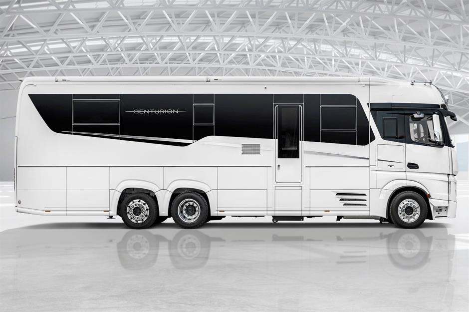 Descris ca un „castel mobil”, Concorde Centurion 1205 GST este un autovehicul cu adevărat luxos. RV vine în două varietăți, o versiune integrată de lux sau un model parțial integrat de clasă inferioară, ambele oferind niveluri ultime de confort. Ce este și mai bine, Centurion este așezat pe un șasiu Mercedes-Benz Actros 1830 L și are un garaj din spate unde vă puteți depozita mașina.