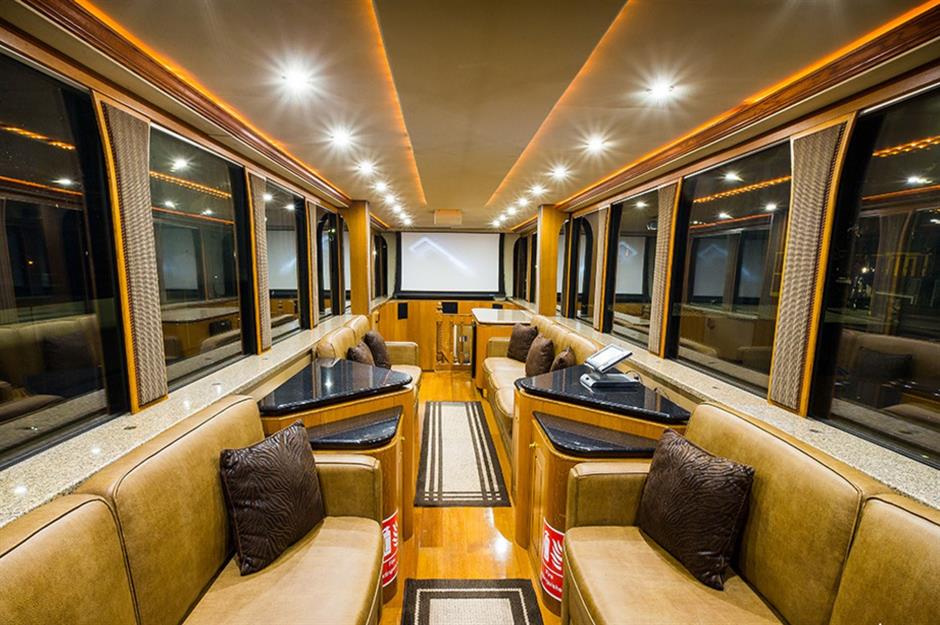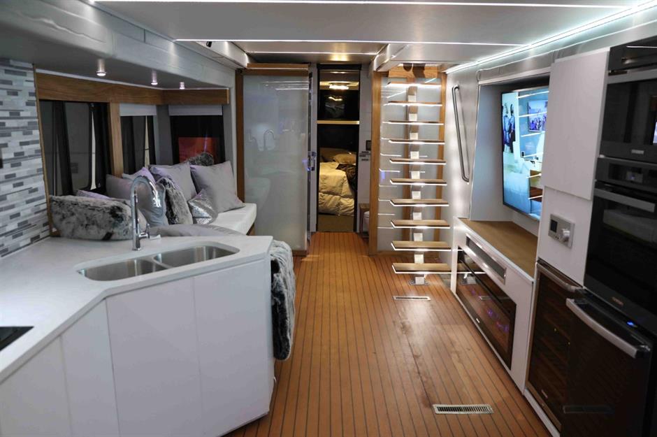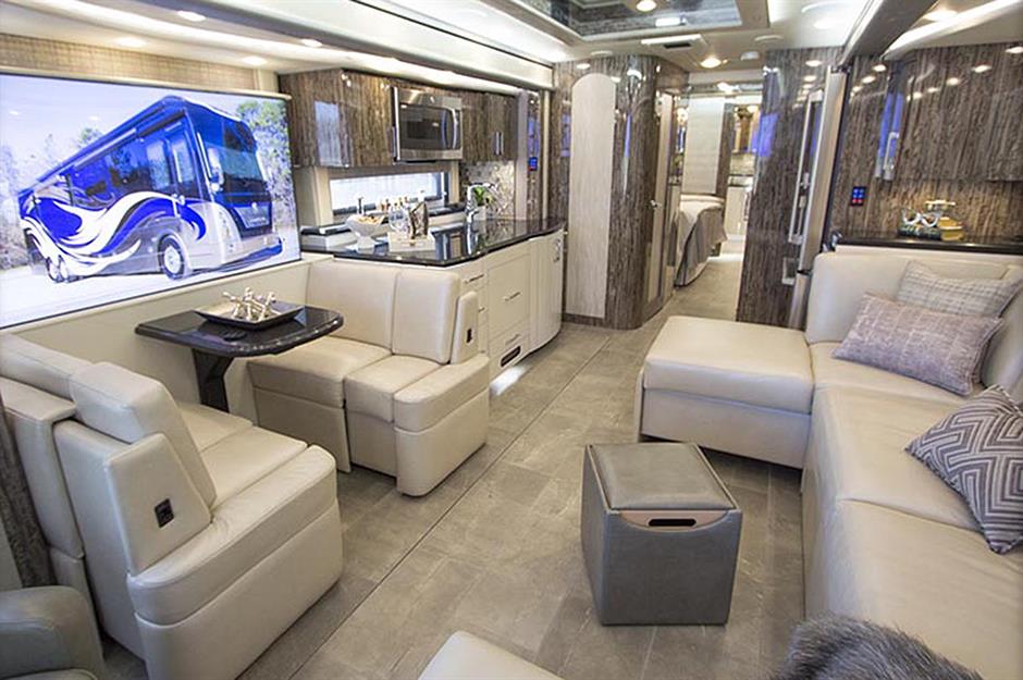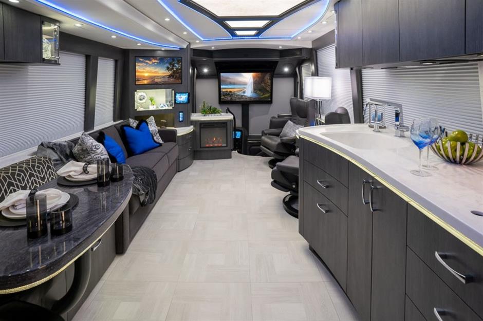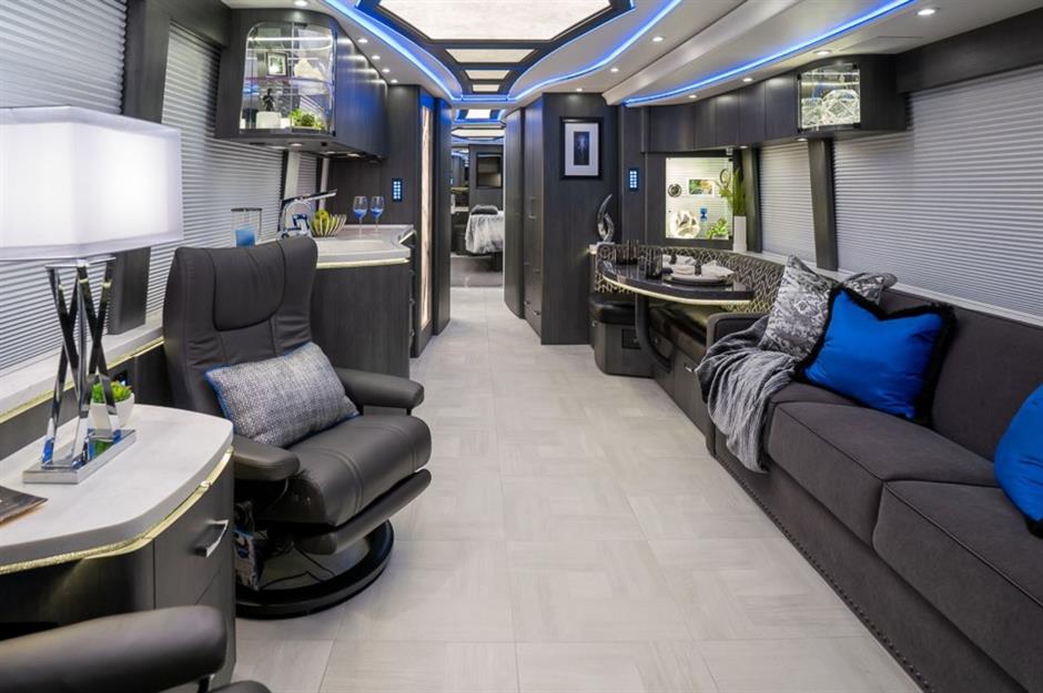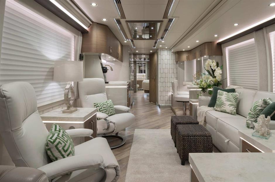 Vehiculul are un interior elegant, asemănător unui apartament penthouse de lux, cu finisaje rafinate și decor fascinant. Compania a creat chiar și mobilier special pentru autorulotă.
