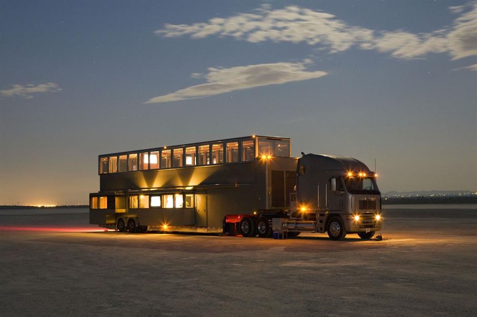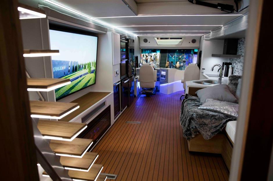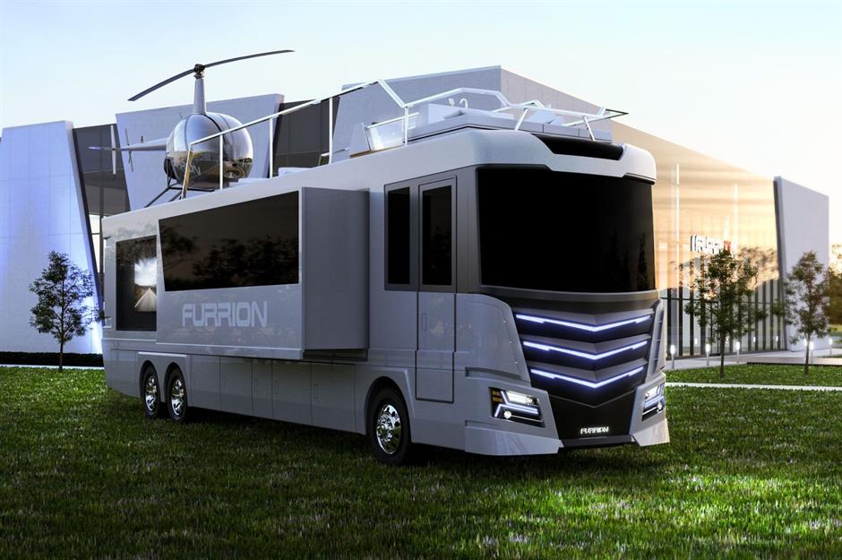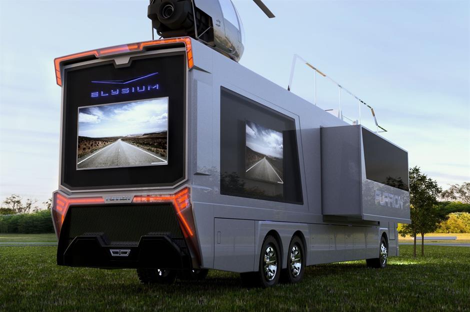Rulota Elysium e făcută de Furrion, un dezvoltator de lux care face şi elicoptere, şi yacht-uri, şi orice costă foarte mult. Trei televizoare de câte 2 metri diagonală, un şemineu, toalete inteligente şi duşuri activate vocal, răcitor pentru vinuri, frigider. Sunt doar cele mai importante dotări de lux. Ai dormitoare şi băi complet funcţionale, un jacuzi pe plafon şi un heliport pentru elciopterul personal.