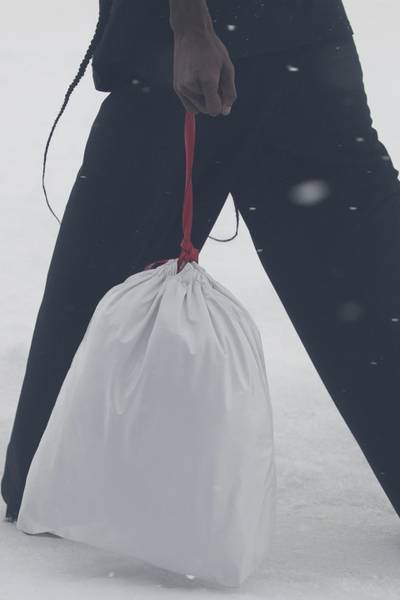 Sacul cu șnur „inspirat de sacii de gunoi” vine în trei culori, în funcţie de preferinţele celui care s-ar încumeta să arunce banii pe aşa ceva: negru, albastru și alb.
