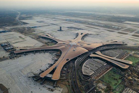 Noul aeroport a fost proiectat de renumitul arhitect Zaha Hadid şi are cel mai mare terminal din lume. Actualul aeroport din Beijing este al doilea cel mai aglomerat aeroport din lume, după cel din Atlanta, conform Airport Council.