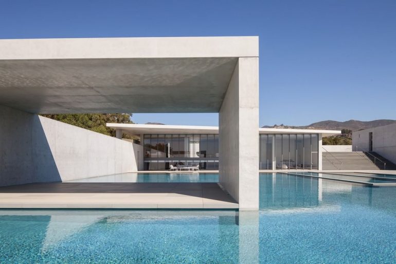 În centrul proprietății se află un conac impunător. Este opera marelui arhitect japonez Tadao Ando, care a colaborat cu WHY Architects din LA pentru a oferi familiei miliardarului o casă de vis. Dată în funcțiune la sfârșitul anilor 1990, această casă contemporană a fost construită în aproape 15 ani.