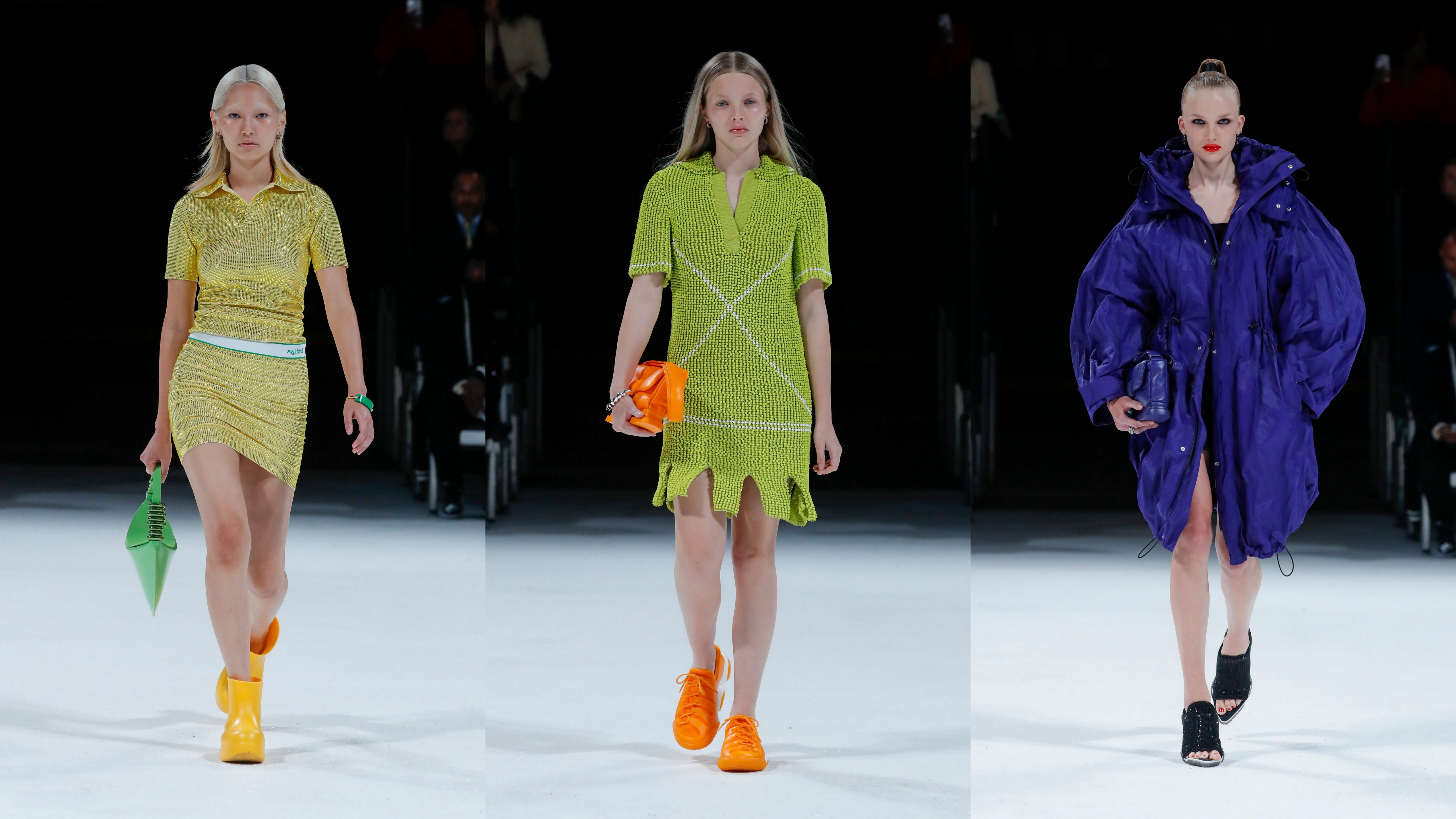 Pare evident că gențile delicios de moi și suple și pantofii sculpturali, dar ușor de purtat, vor obține un succes stratosferic. Dar, într-un fel, Daniel Lee reușește întotdeauna să-și reinventeze estetica. Noile sandale triunghiulare, rucsacuri și adidași în culori vii sunt confecționate din „terry tehnic”, iar gențile Cassette intrecciato au fost și ele concepute în materiale noi.