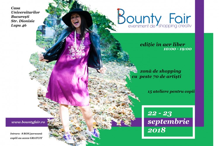 Reuneşte aproximativ 70 de artişti romȃni și creații lucrate manual, cu design propriu. Știm că vara, momentele, oamenii și locurile prin care ai cutreierat te-au inspirat și abia aștepți noua ediție Bounty Fair #37 pentru a te revedea cu vechii tăi prieteni creativi și pentru a materializa inspirația plină de stil în ținute cu personalitate. Nu am uitat nici de cafea și ciocolată caldă, gustări gourmet aburinde și activități pentru oamenii mici.