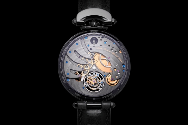 Structura deschisă a mecanismului este modernă, în ciuda complicației tradiționale: mecanismul conține 356 de componente și un tourbillon zburător cu o evacuare și o rezervă de energie impresionantă timp de 10 zile. Se află într-o cutie cu un diametru de 44 mm, cu o coroană la ora 12, care este și semnătura acestui faimos brand. La fel ca și designul mecanismului, noua carcasă din titan cu acoperire DLC oferă un aspect puțin mai convențional.