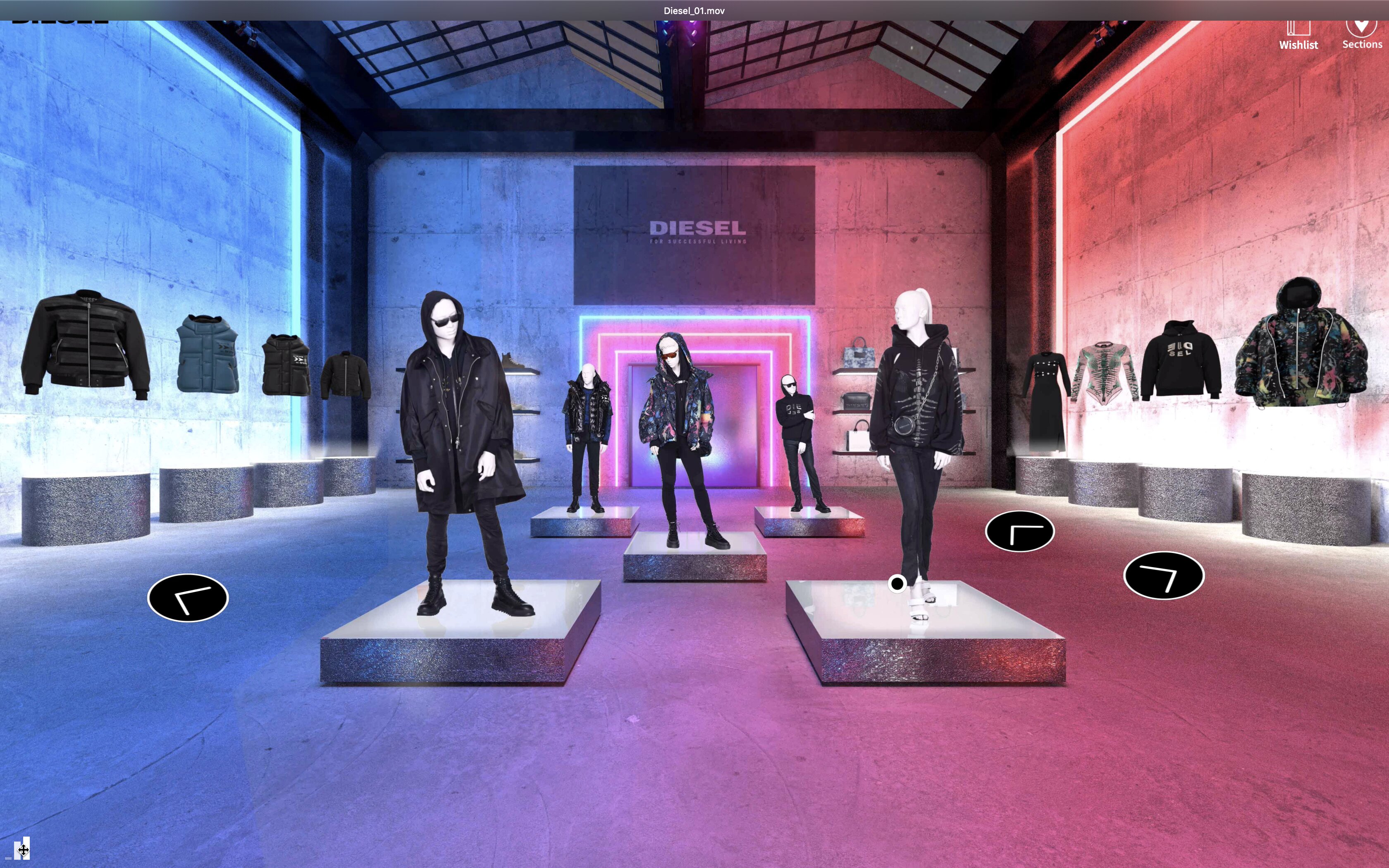 Portalul oferă oportunitatea de a avea close-up-uri detaliate 2D ale produselor cu descrieri reale, în timp ce cele mai caracteristice haine și accesorii sunt vizibile la 360 °, împreună cu denim, care rămâne în centrul colecției de patrimoniu a Diesel. Un spațiu este dedicat și „testelor video” fiecărei ținute, cu imagini de înaltă calitate, capabile să reproducă senzația fizică și tactilă a produsului.