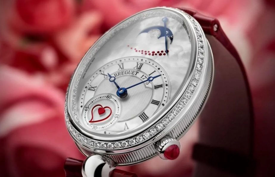 Depășește tot ceea ce ai făcut vreodată pentru iubita ta, de Sf. Valentin. S-ar putea ca lumea să fie încă năucită de efectele secundare ale Revelionului, dar Breguet este cu un pas înainte cu ediția limitată a ceasului Reine de Naples, cu totul romantică. Punctul culminant al acestui ceas este un cadran cu aspect suprarealist, care arată ca un pat pufos de nori datorită bazei sidef. Nuanțele subtile de roșu scot în evidență dragostea în acest ceas; mai întâi, la ora 12, swoosh-ul punctelor roșii, alias, traseul iubirii, apare în roșu, indicând rezerva de putere de 45 de ore.