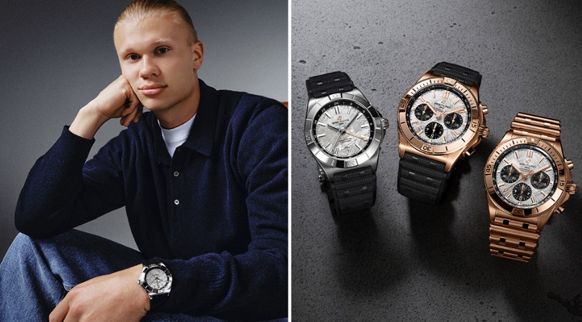 Jucătorul norvegian de fotbal a colaborat cu Breitling pentru o pereche de ceasuri în ediție limitată, fiecare echipat cu un cadran astronomic din meteorit tăiat din rocă astrală. Pe lângă linia Erling Haaland Signature Chronomat, cei doi au și un alt as în mânecă pentru cercul apropiat al lui Haaland: o iterație ultra-exclusivă creată special pentru atlet și cei mai apropiați prieteni ai săi.