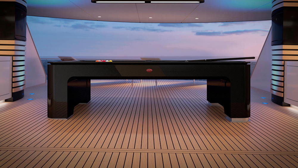 Construit în întregime din fibră de carbon și aluminiu, masa de biliard Bugatti arată la fel de specială ca și hipercarurile care poartă emblema EB. Suprafețele care vin în contact cu bilele sunt înfășurate în piele de anilină – aceeași piele produsă în Austria și folosită la mașinile Bugatti. Doar 30 de unități vor fi produse, fiecare fiind livrată într-un finisaj elegant. Prețul unei mese este de 300.000 de dolari, potrivit Robb Report.