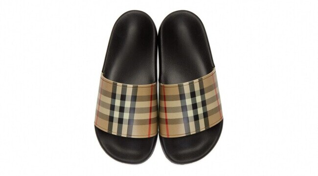 Noul modul are un vârf rotund, decupat, cu o talpă din cauciuc negreu, aflându-se eticheta casei de modă pe lateral. O pereche de astfel de papuci costă 240 de dolari, aproape 200 de euro.