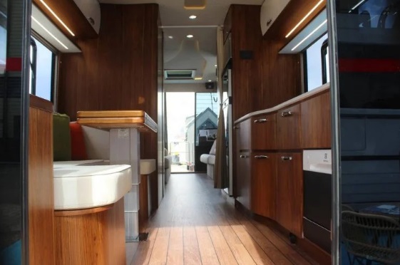 Alte facilități includ un sistem de divertisment cu smart TV LED retractabil și sistem audio Bluetooth. Interiorul este îmbrăcat cu piele de pluș și Alcantara, iar podeaua este din lemn de tec. Caracat are o toaletă și o cadă, bucătărie și canapele care se transformă în zone de dormit.