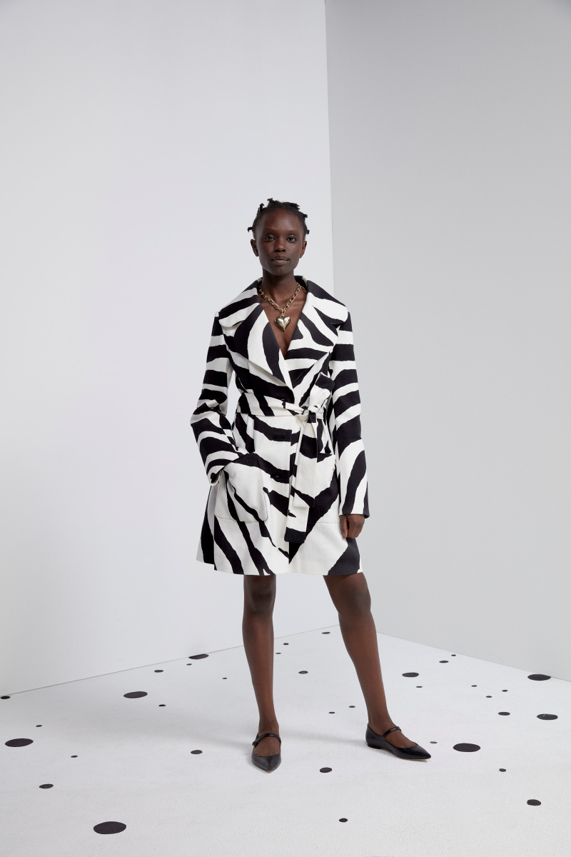 Gordon propune o garderobă de libertate care promovează distracția, cu fuste A-line cu imprimeu zebră, bluză din șifon cu buline, costum albastru, jachetă decupată cu tiv curbat, manșete cu volane.