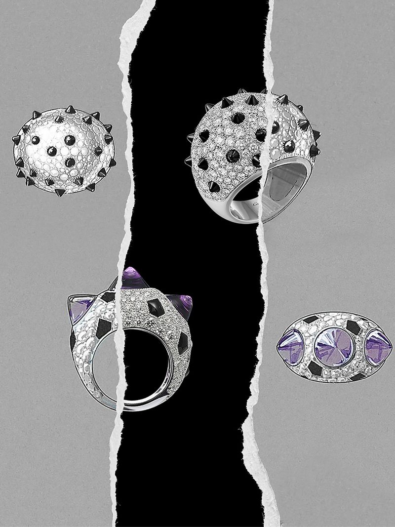Clash de Cartier, deja uimitoare și captivantă, este reinventată cu bijuterii prețioase monocrome și excesive, spiky și voluminoase înlocuind motivele florale, naturale.
