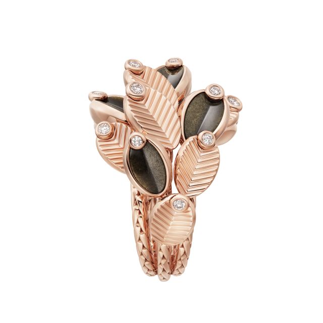 Atelierul de bijuterii al Maison a reușit, de-a lungul anilor, să reînnoiască cu brio mișcarea și măiestria volumelor în jurul acestui motiv.
