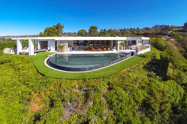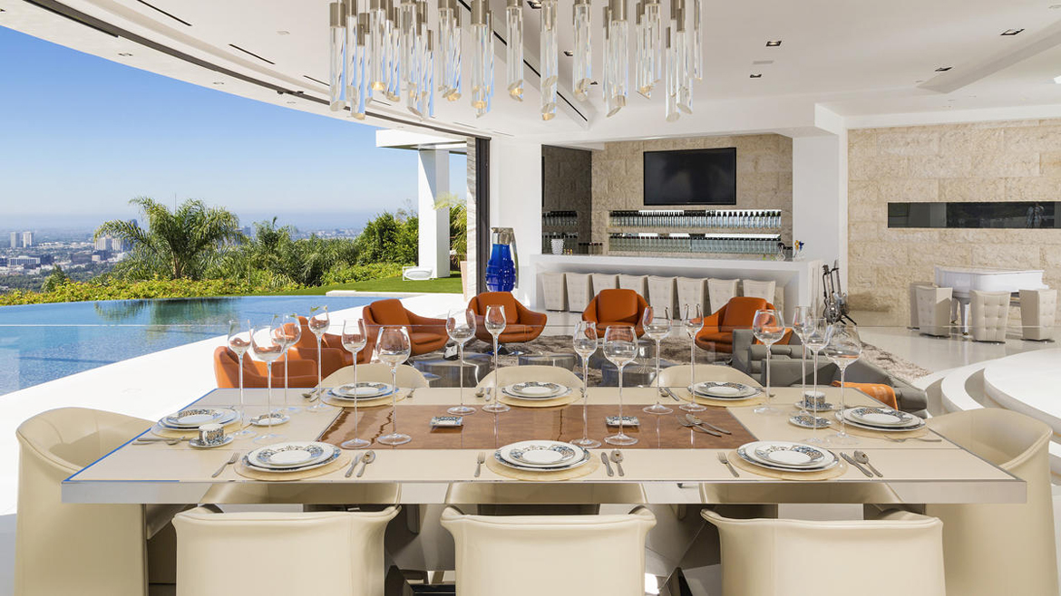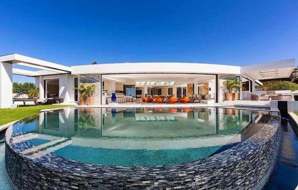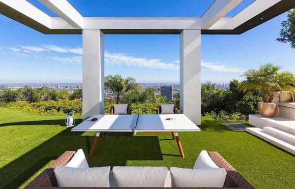 Impresionanta vilă își merită pe deplin prețul. Casa amplasată în Beverly Hills Mansion are 23 000 de metri pătrați, conține 8 dormitoare, 15 săli de baie, o parcare pentru 16 mașini, un bazin imens și o vedere extraordinară spre Malibu și Los Angeles. Proprietatea celebrului cuplu mai dispune de spa, o bucătărie de vară, un teren de tenis, cramă, sală de fitness, sală de billiard și cinema.