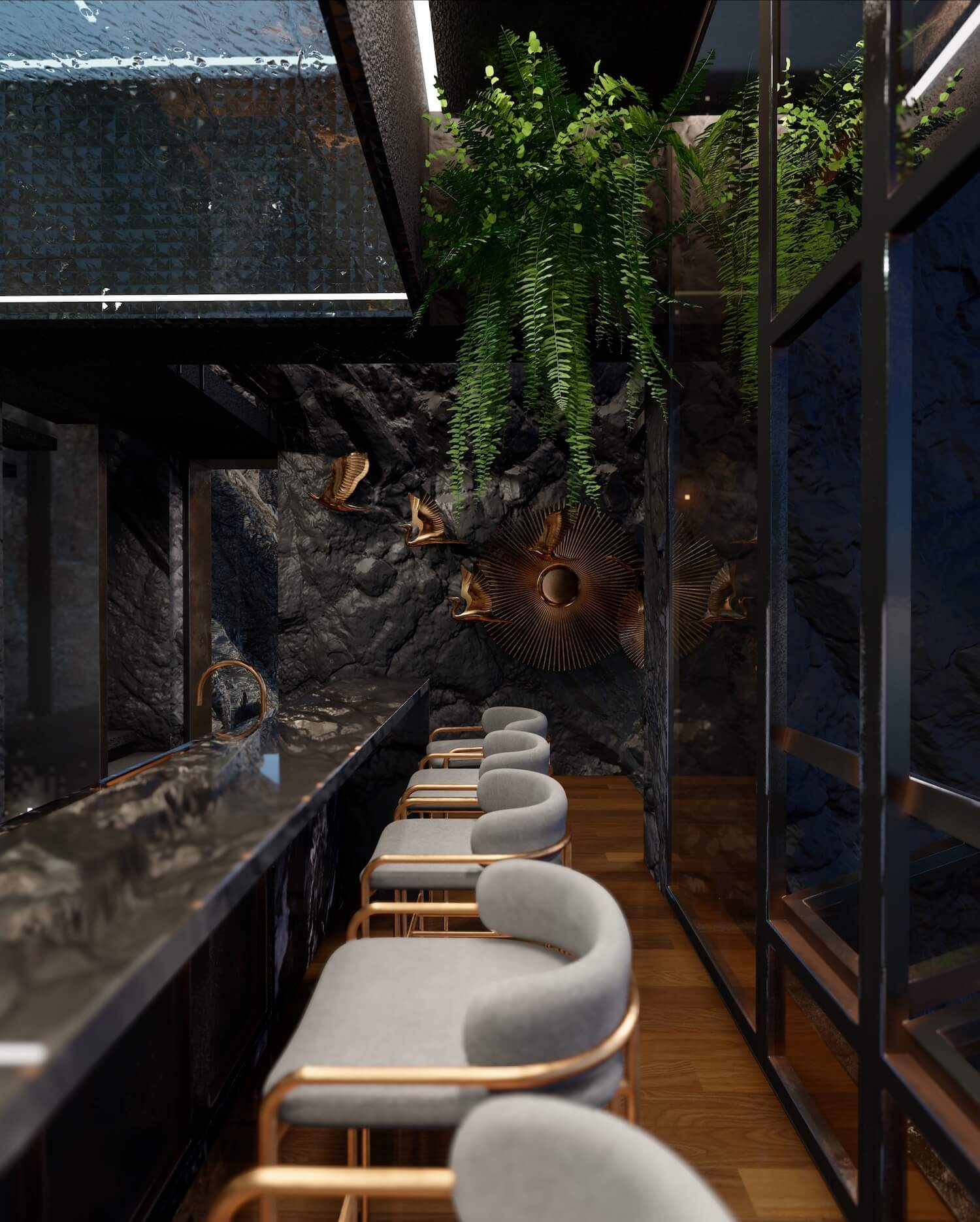 În plus, întreaga construcție este ecologică și echipează energie regenerabilă pe lângă un sistem de cascadă care generează un ciclu care furnizează energie locuinței, sporind totodată atractivitatea estetică a casei.