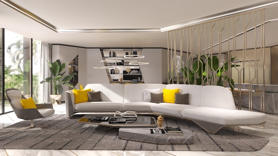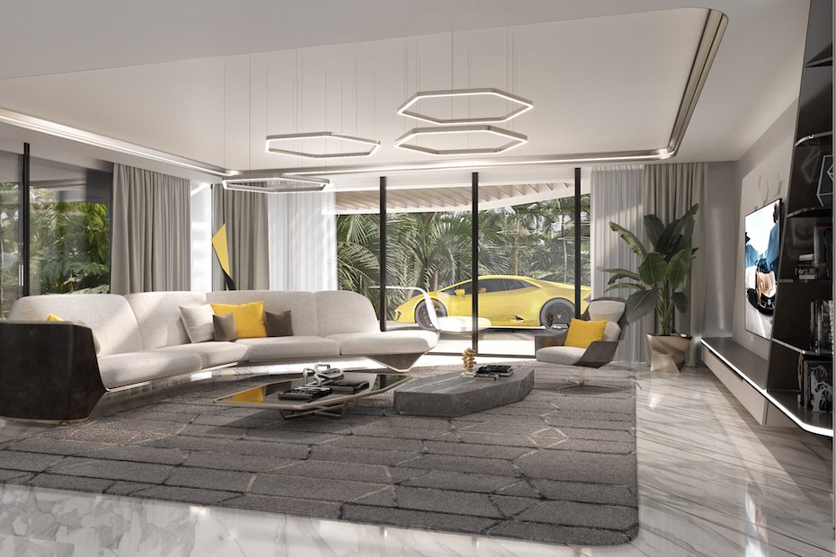 Noii proprietari pot opta, de asemenea, să-și mobileze vilele cu mobilier de marcă special conceput pentru Automobili Lamborghini, la un cost suplimentar.